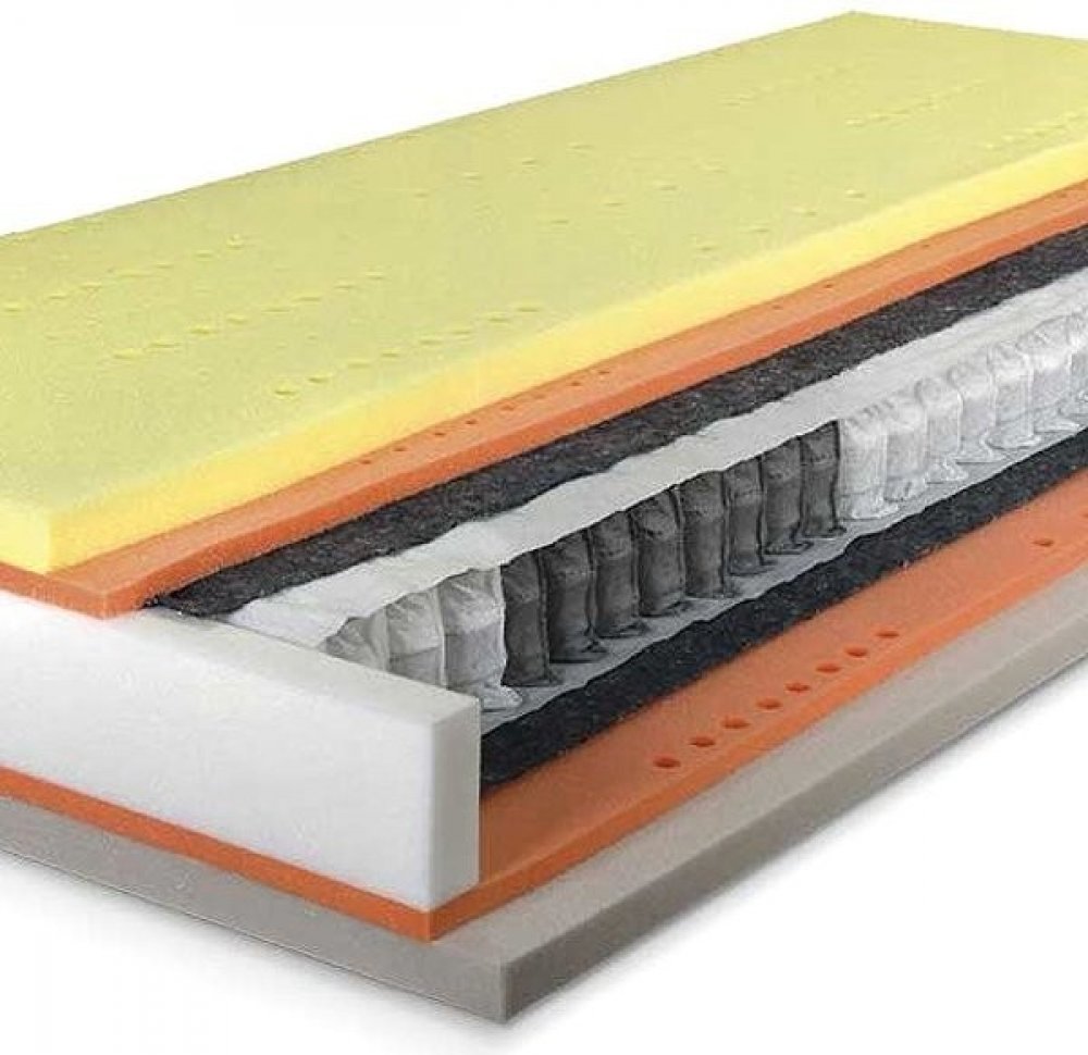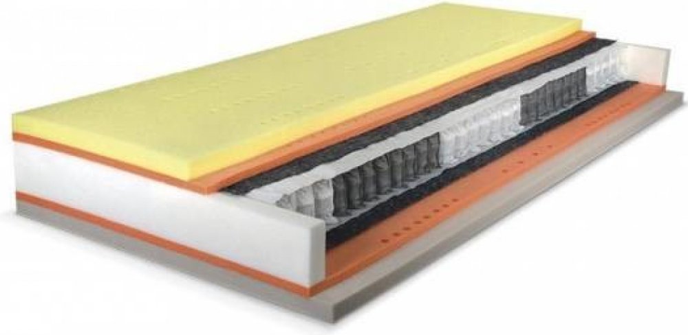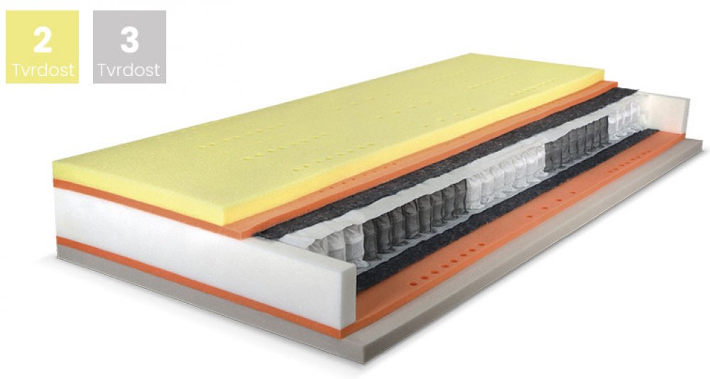 Vysoká matrace s jádrem ze stovek taštičkových pružin v kombinaci s vysoce komfortní HR studenou pěnou a Visco pěnou. Reakce Visco pěny na teplotu lidského těla zaručuje unikátní pocit při ležení. Dokonalého odvětrání je dosaženo děrováním technologií ŘEŠETO.