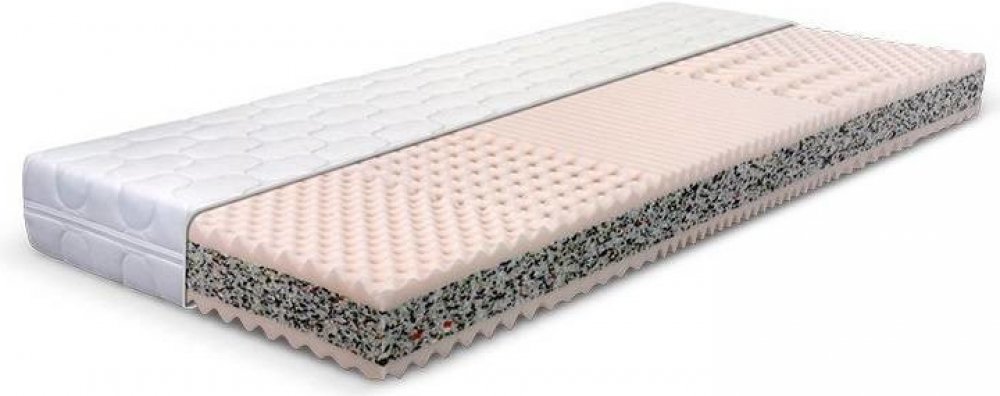 5-zónová matrace z kvalitních pěn zajišťuje anatomicky správný a velmi dobrý spánkový komfort. Oboustranné jádro matrace je složeno z desky kvalitního odlehčeného polyuretanu a po obou stranách tvořeny masážními deskami z vysoce kvalitní pěny tuhosti 25 kg / m a sup3;. Matrace je vybavena potahem Dry fast A...