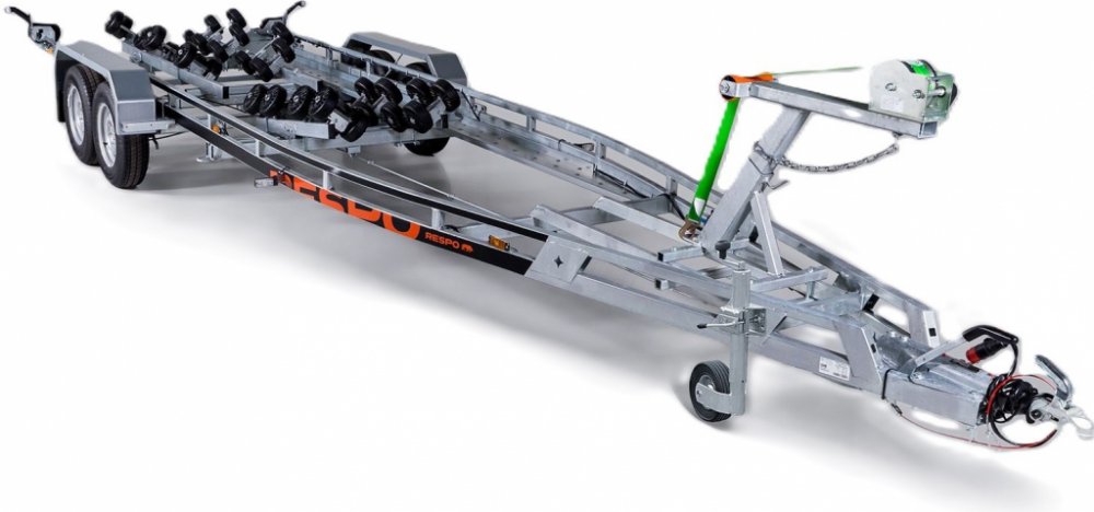 Vysoce odolný, bržděný, víceválcový přepravník lodí RESPO 2700V802 Multiroller. Samoregulační systém 36 válců zajišťuje plynulé a bezpečné nakládání i vykládání lodi. Přívěs RESPO V802 s žárově zinkovaným rámem, odolnými stupňovitými blatníky s povrchovou úpravou Magnelis®, boční pochozí zinkovanou lávkou, je osazen dvěma nastavitelnými torzními nápravami. Manuální naviják s bezpečnostním řetěz...