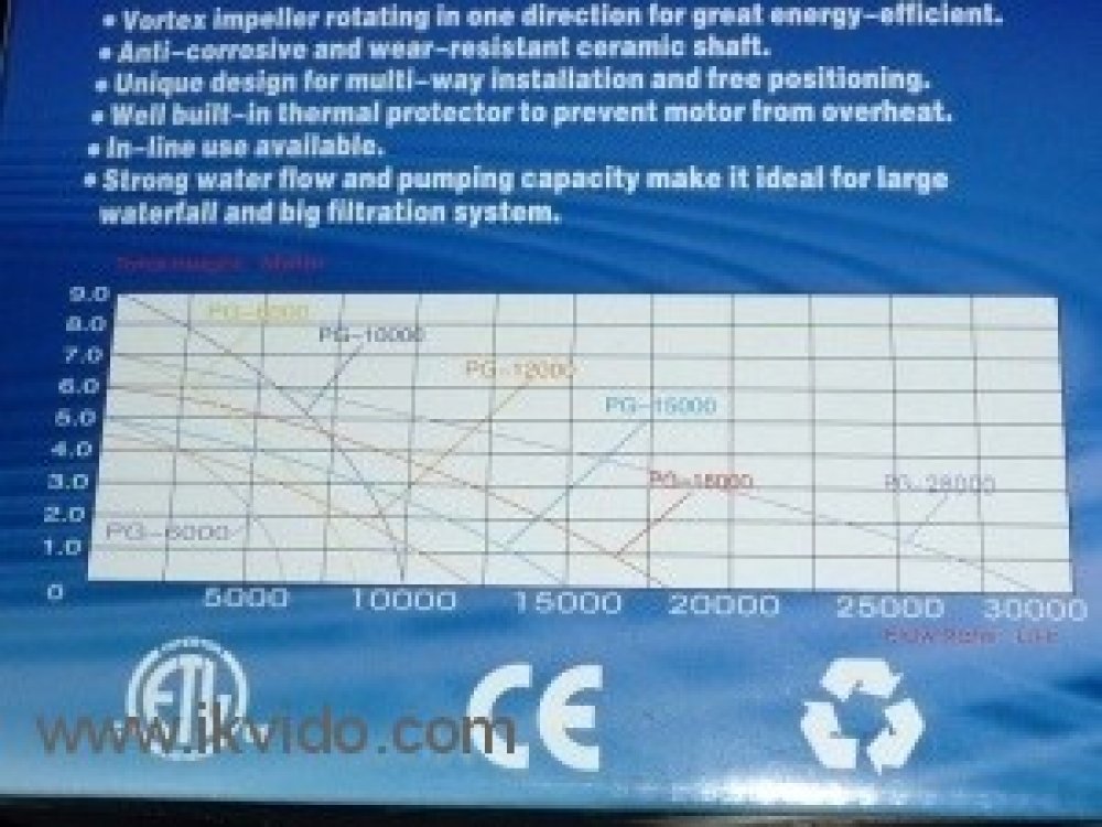 K použití do velkých filtračních systémů a fontán, může pracovat uvnitř i vně nádrže. Lze je použít i pro přečerpávání velkých objemů vody např. v pěstírnách nebo v zahradních jezírkách.