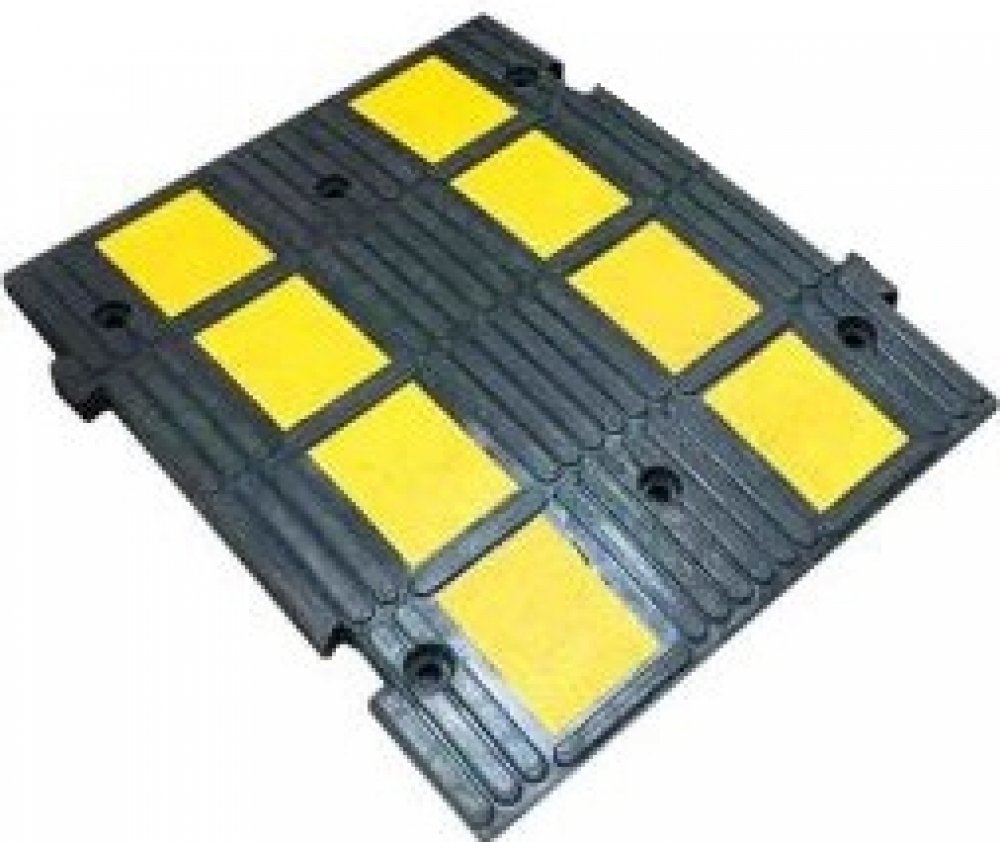 Retardér a kabelový přejezd v jednom – o chrání kabely, hadice a zároveň sníží rychlost projíždějících vozidel. Retardéry a kabelové přejezdy využijete na silnicích, parkovištích, u vjezdů do objektů, na stavbách, kulturních akcích. Tento retardér je určený pro přejezd těžké techniky. Vyroben z vulkanizované pryže – odolný proti oleji, kyselinám, benzínu, UV záření a povětrnostním vlivům. Nabízí protiskluzový povrch, vysokou nosnost, nesnadnou hořlavost a stabilitu. V yvarujte se dlouhodobému kontaktu s uhlovodíky. Modulární design umožňuje libovolné rozšíření. Žluté reflexní pruhy zajišťují viditelnost i v nepříznivých podmínkách. I nstalace je rychlá a snadná, každý prvek je vybaven dvěma otvory. Produkt se dá upevnit šrouby do asfaltu | betonu nebo lepidlem, které naleznete v našem sortimentu (není součástí balení).