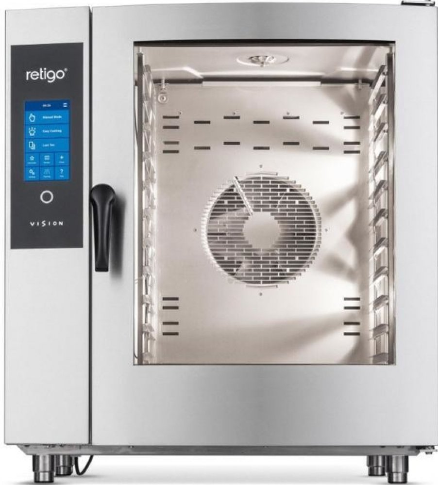 Jedna z nejprodávanějších velkostí konvektomatů Retigo Vision, velikost 1011, je ideální pro provozy s kapacitou 151-250 jídel denně. Rozměr gastronádob je GN 1/1 (530x325 mm). K velikosti 1011 je možné přikoupit široké příslušenství – různé druhy nerezových podstavců, digestoř Vision Vent apod. Model 1011 lze postavit do sestavy s konvektomatem 611. Systém vývinu páry je bojlerový.