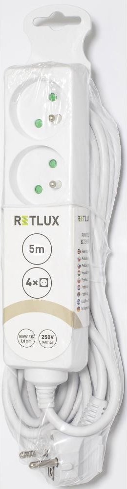Prodlužovací přívod RPC 09 RETLUX je ideálním řešením pro domácnosti a kanceláře, které potřebují flexibilní připojení elektrických spotřebičů. Tento prodlužovací přívod má délku 5 m, což umožňuje snadný přístup k elektrickým zásuvkám i na hůře dostupných místech. Je vybaven čtyřmi zásuvky a vodiči s průřezem 3 x 1,0 mm², což zaručuje bezpečný a efektivní přenos elektrického proudu.