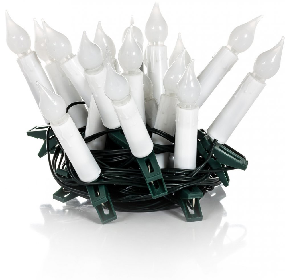 Vánoční světelný řetěz zdobený svíčkami s klipem pro přichycení