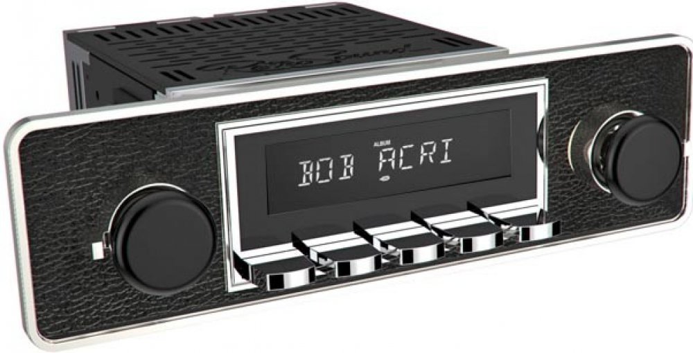 RetroSound Trim kombinuje prvky tradičních plastů s chromovými doplňky. S černým vroubkovaným čelním panelem a chromovými ovládacími prvky zachováte design takřka jakéhokoliv youngtimera a nemusíte řídit bez příjmu standardního rádia nebo dokonce rádia digitálního. Krom standardního příjmu nabízí Trim 6DAB Bluetooth pro handsfree telefonování či A2DP audiostreaming, 2x USB vstup, nebo i připojit externí zařízení, jako je Váš mobilní telefon, přes 3.5 mm AUX-In vstup. Trim 2DAB navíc umožňuje dokonalé odladění designu díky variabilnímu podsvícení tlačítek a displeje.