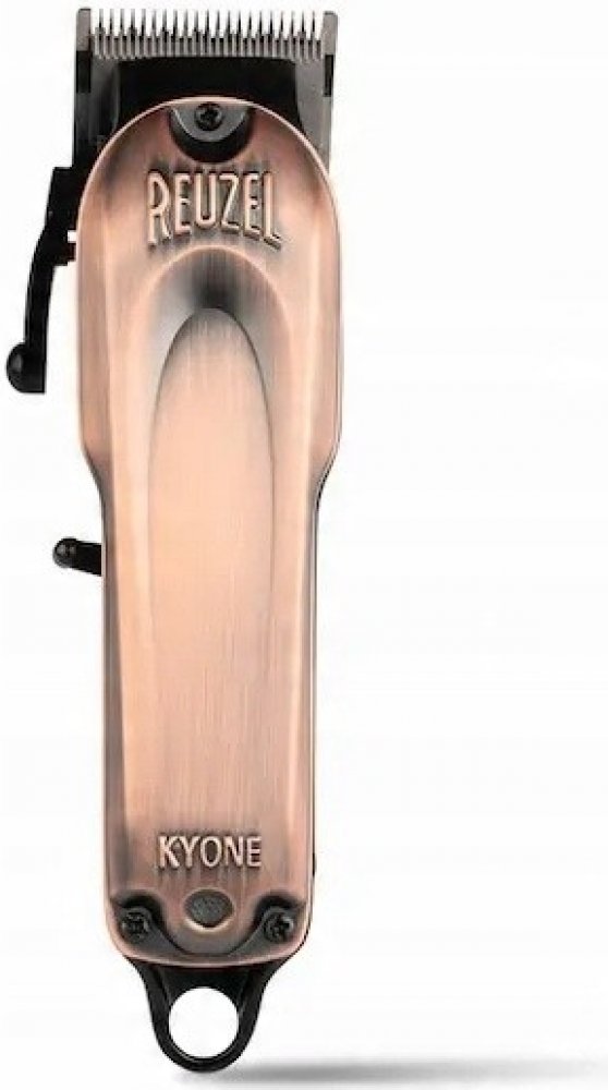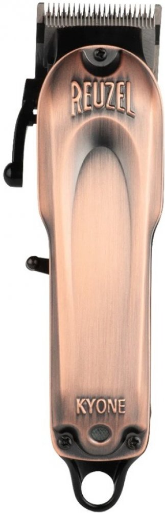 Elegantní, celokovové tělo se stylovým krytem v barvě mědi v sobě uschovává silný rotační motor s 7200 otáčkami za minutu, jehož konstantní výkon je kontrolován mikročipem. Baterie s velkou kapacitou zajistí až 240 minut provozu strojku při plném, 180 minutovém nabití. Strojek je osazen kvalitní keramickou čepelí o šířce 46 mm, která má lepší odolnost proti opotřebení, bezkonkurenční ostrost a odolnost proti extrémnímu teplu. Reuzel x Kyone clipper je vybaven speciální technologií chlazení keramické čepele pro její 3-4x delší životnost. V balení naleznete rovnou i druhou fade hlavici. Výška střihu je nastavována pomocí páky od 0,5 mm do 3,5 mm. Díky své kovové konstrukci nepatří k nejlehčím strojkům (váží 405 g) a má robustnější tvar. Jeho konstrukce však přispívá k tichému chodu strojku a nízkým vibracím. Strojek Reuzel clipper poskytuje výkon na nejvyšší úrovni.