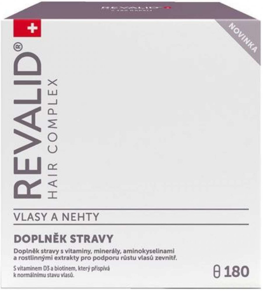 Revalid Hair Complex je doplněk stravy obsahující vitaminy, minerály, aminokyseliny a rostlinné extrakty.