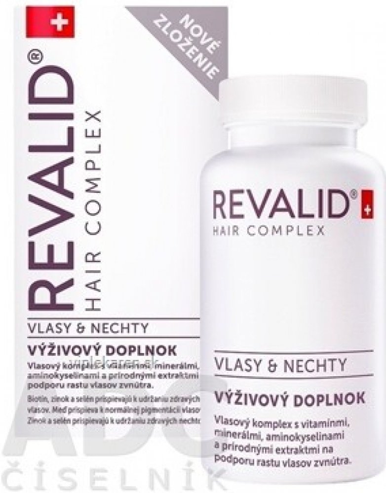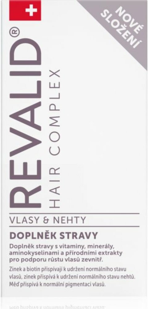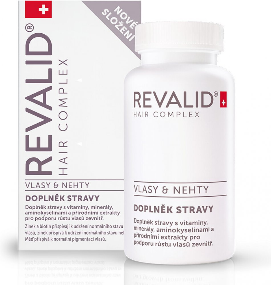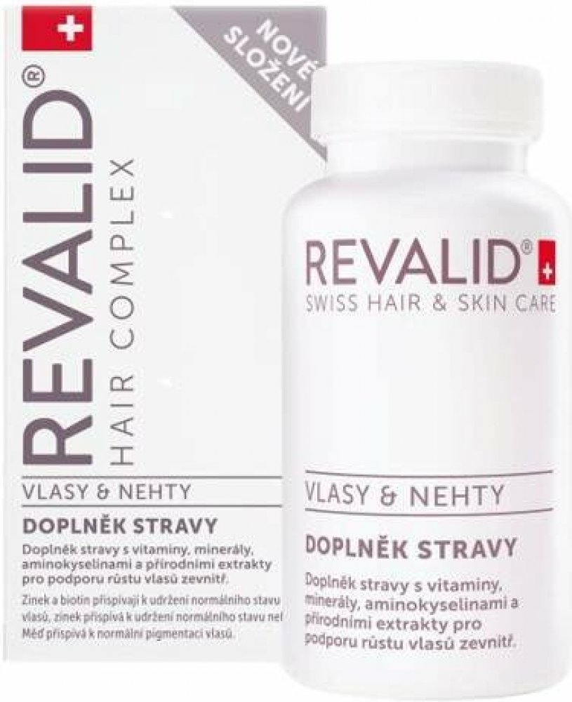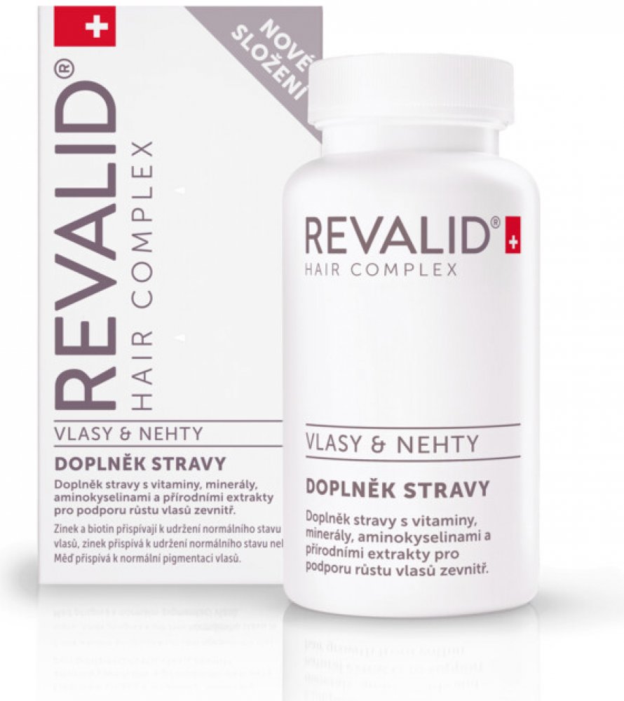 Revalid Hair Complex je doplněk stravy nabitý vitaminy, minerály, aminokyselinami a rostlinnými extrakty. Biotin a zinek jsou důležité pro výživu vlasů, zinek navíc přispívá k dobrému stavu nehtů.