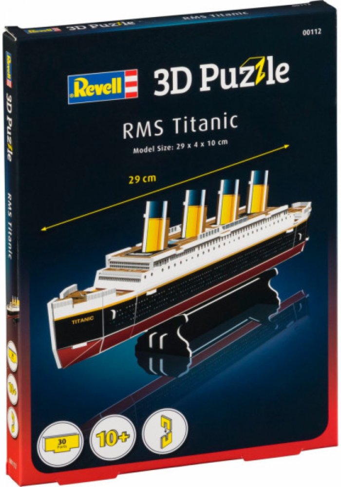 3D puzzle - stavebnice legendárního zaoceánského parníku Titaniku s výškou 100 mm. Puzzle obsahuje 30 dílků, které snadno spojíte bez použití nůžek a lepidla. Sestavování 3D puzzle od Revell je skvělou zábavou pro celou rodinu. Hotové modely mohou jsou parádním a sběratelským či dekorativním doplňkem bytu nebo dětského pokoje. Dílky jednoduše sestavíte pomocí návodu bez použití lepidla a nůžek - p...