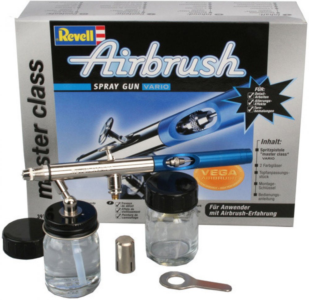 Airbrush Spray Gun - master class (Vario) Revell. Stříkací pistole a kompresory, Stříkací pistole. 'VARIO' z řady 'master class' pro zkušené airbrushery je tou nejvšestrannější ze stříkacích pistolí od Revellu. Můžete s ní bez problémů barvit nejenom velké plochy, ale i ty nejdrobnější detaily, stejně jako vytvářet dokonalý efekt stárnutí materiálů, nebo různé kamuflážní nátěry.