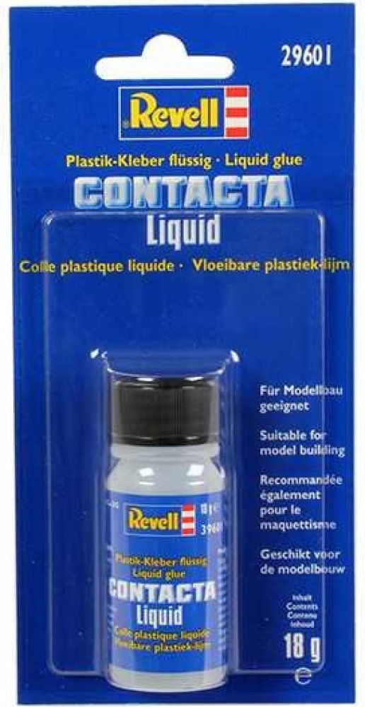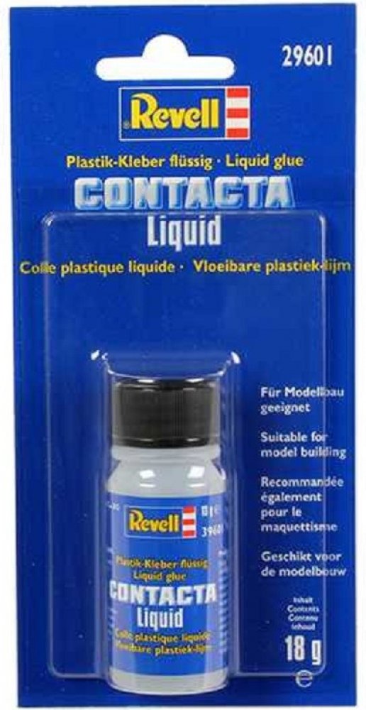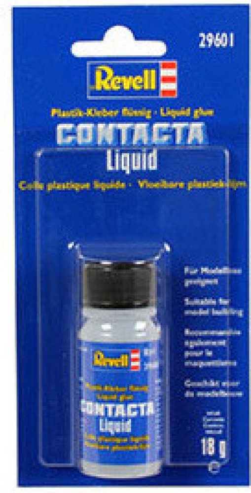 Tradiční lepidlo pro plastové modely se svařováním účinkem. Spojuje jednotlivé části pevně dohromady. Revell Contakta Liquid je kapalné lepidlo, které se nanáší štětcem.