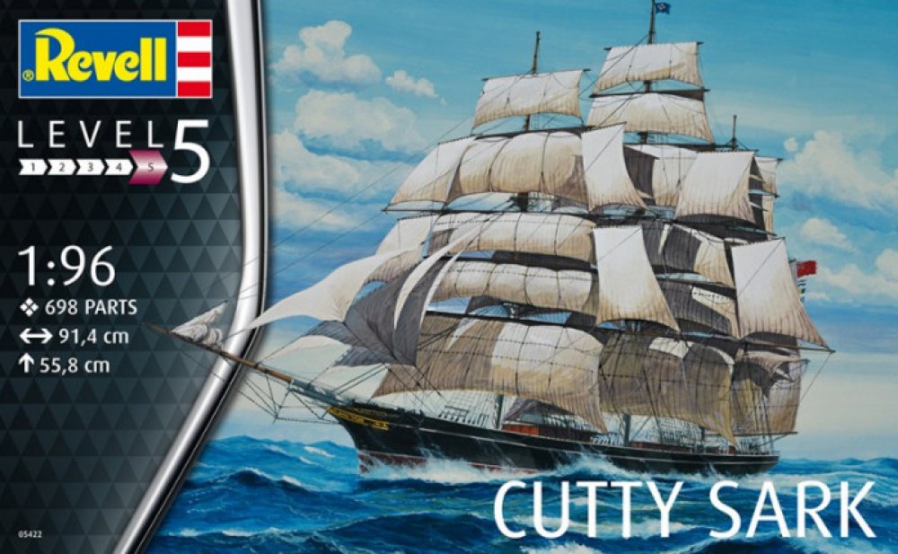 Plastikový model lodě Revell 05422 - Cutty Sark v měřítku 1:96 ke slepení. Stavebnice obsahuje 698 dílků, délka 914 mm, obtížnost 5.