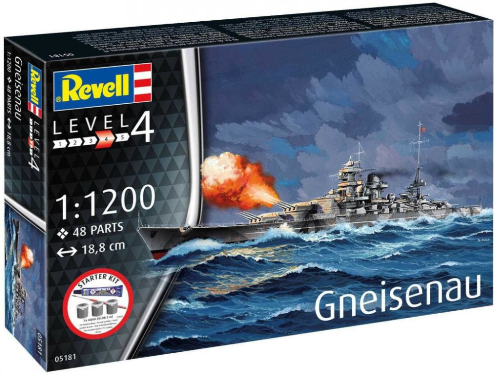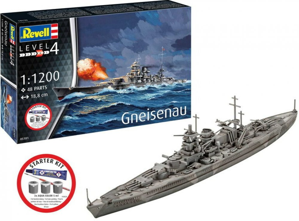 Revell Starter Kit loď 75181Battleship Gneisenau 1:1200