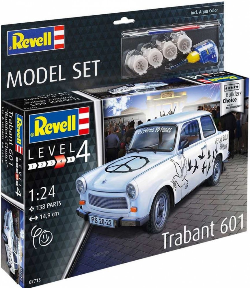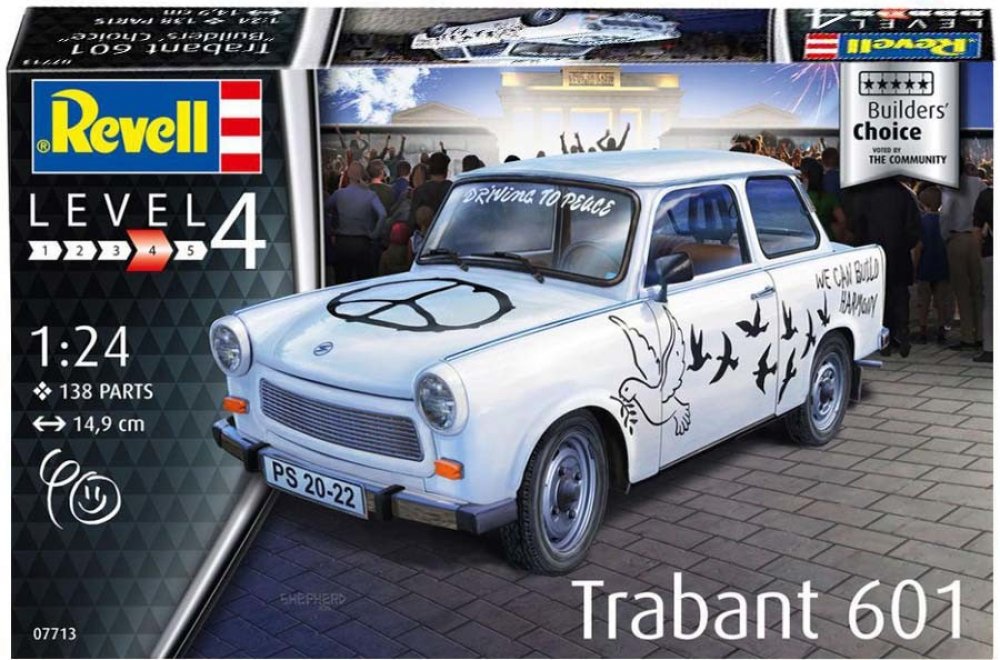 Od modelářů pro modeláře – to jsou stavebnice "Revell Builder's Choice". Tentokrát se modeláři rozhodli vyzdvihnout malý kousek německé historie. Trabant 601S byl třetím a nejvíce vyráběným modelem východoněmecké řady malých vozů Trabant. Přezdívalo se mu "Trabi" a vyráběla ho společnost Sachsenring Automobilwerken Zwickau v letech 1964-1990.