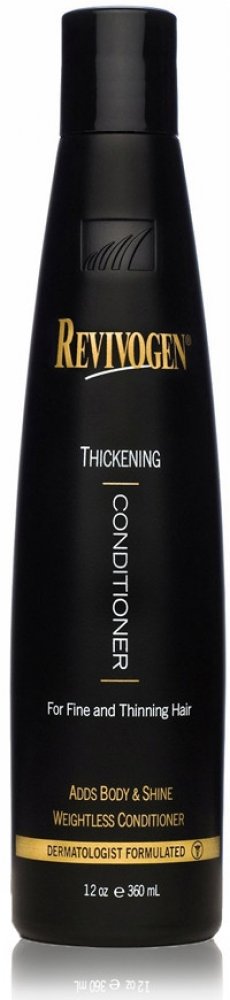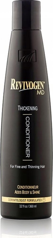 Revivogen Thickening Conditioner je kondicionér na vlasy podporující terapii Revivogen Scalp Therapy. Speciálně vybrané složky mají vyživující účinek na vlasy a zanechávají je lesklé, zvětšují jejich objem a obnovují jejich přirozený lesk. Kondicionér působí anti-DHT a aktivuje tak vlasové folikuly a stimuluje jejich růst. Díky speciálně vybraným proteinům, které obklopují vlasy, je vlas silnější, silnější a lesklejší. Kondicionér Revivogen je přirozeným doplňkem šamponu Revivogen Bio-Cleansing a mohou jej používat muži i ženy. Účinky jsou potvrzeny vědeckými klinickými studiemi, brak žádné vedlejší účinky.