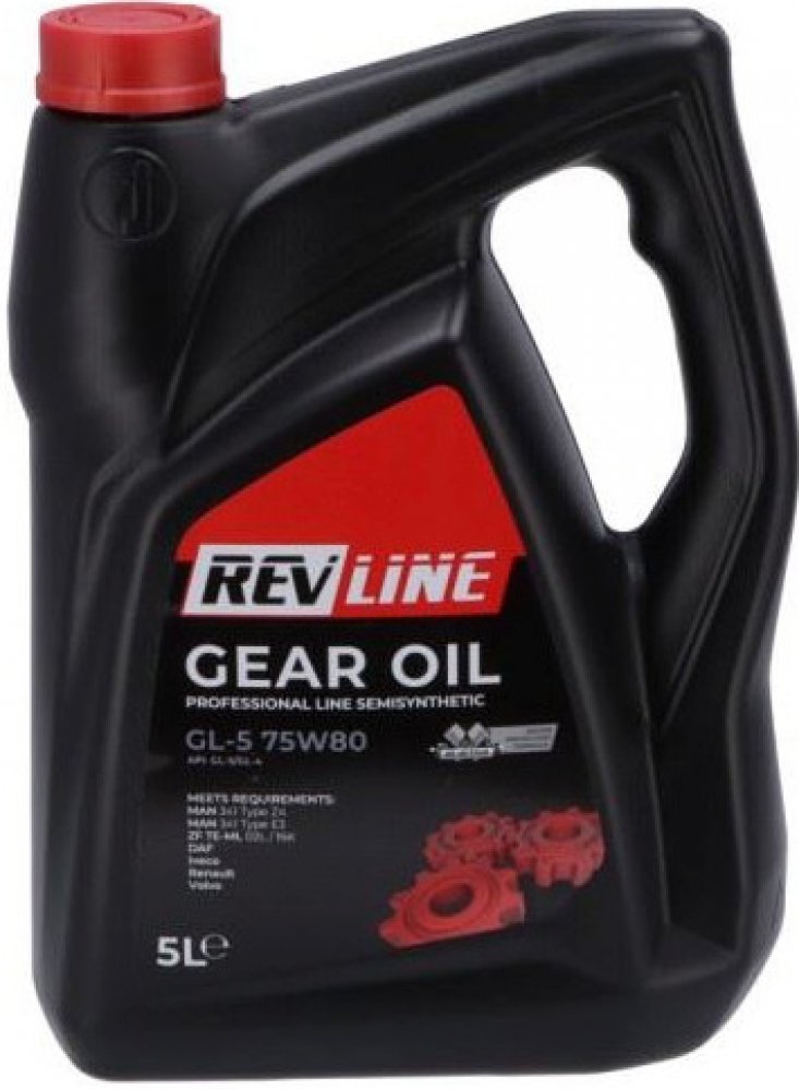Důležité: Polosyntetický olej pro manuální převodovkyPopis produktu:Revline Polosyntetický převodový olej GL-5 75W-80 univerzální, polosyntetický, vícestupňový převodový olej určený pro použití v manuálních převodovkách a hnacích mostech automobilů a jiných motorových vozidel provozovaných v extrémních provozních podmínkách, v širokém rozsahu okolních teplot, kde je vyžadován olej třídy GL-5 a viskozita 75W-80.Specifikace:API: GL-5/GL-4 SAE: 75W-80 MAN:341 typ Z4, MAN: 341 typ E3 ZF TE-ML 02L/16K DAF Iveco Renault Volvo.