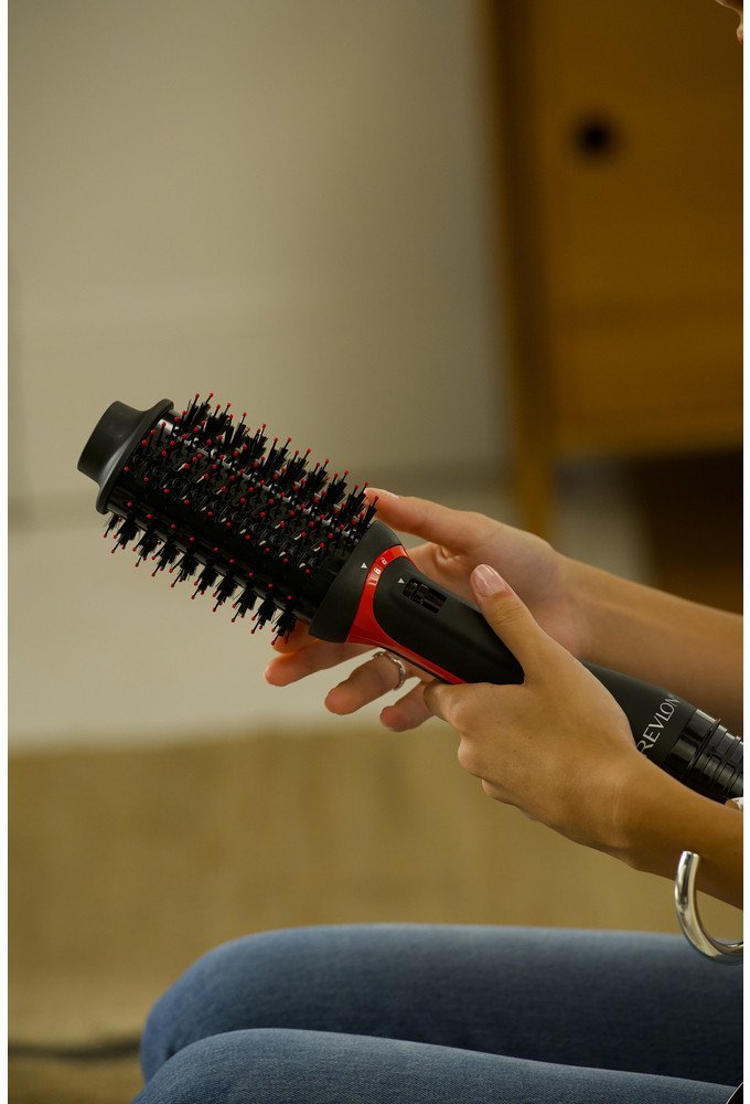 Revlon One-Step Volumizer Plus RVDR5298E disponuje keramickým titan-turmalínovým povrchem, což umožňuje rovnoměrné rozložení tepla, a minimalizuje tak riziko poškození vlasů horkým vzduchem. Tvarování a zvýšení objemu vlasů je snadné díky speciálně navržené oválné hlavici. Inovativní štětiny s aktivním uhlím urychlují proces vysoušení a dodávají vlasům větší lesk. Tento přístroj má také odnímatelnou hlavici, čímž se stává skvělým parťákem pro cestování.