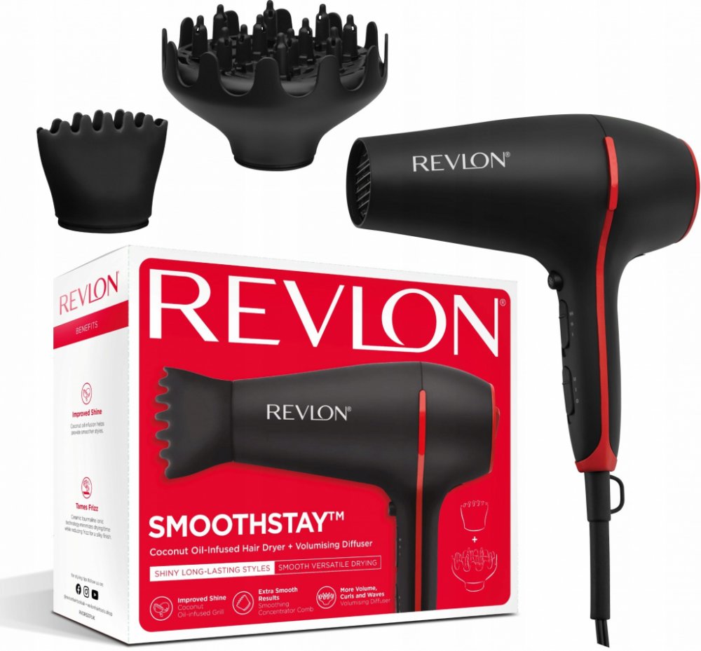 Nejen každodenní styling, ale dokonce i spánek dávají našim vlasům zabrat. Většina z nás si vlasy fénuje poměrně často, tak proč to nedělat ještě šetrněji? Kokosovým olejem obsaženým ve fénu na vlasy Revlon SmoothStay Coconut Oil RVDR5317E předcházíte nechtěným vlivům horkého vzduchu na vaše vlasy jejich přímým vyživením. Výsledkem jsou zdravé, lesklé a hebké vlasy, po kterých jste vždy toužili.