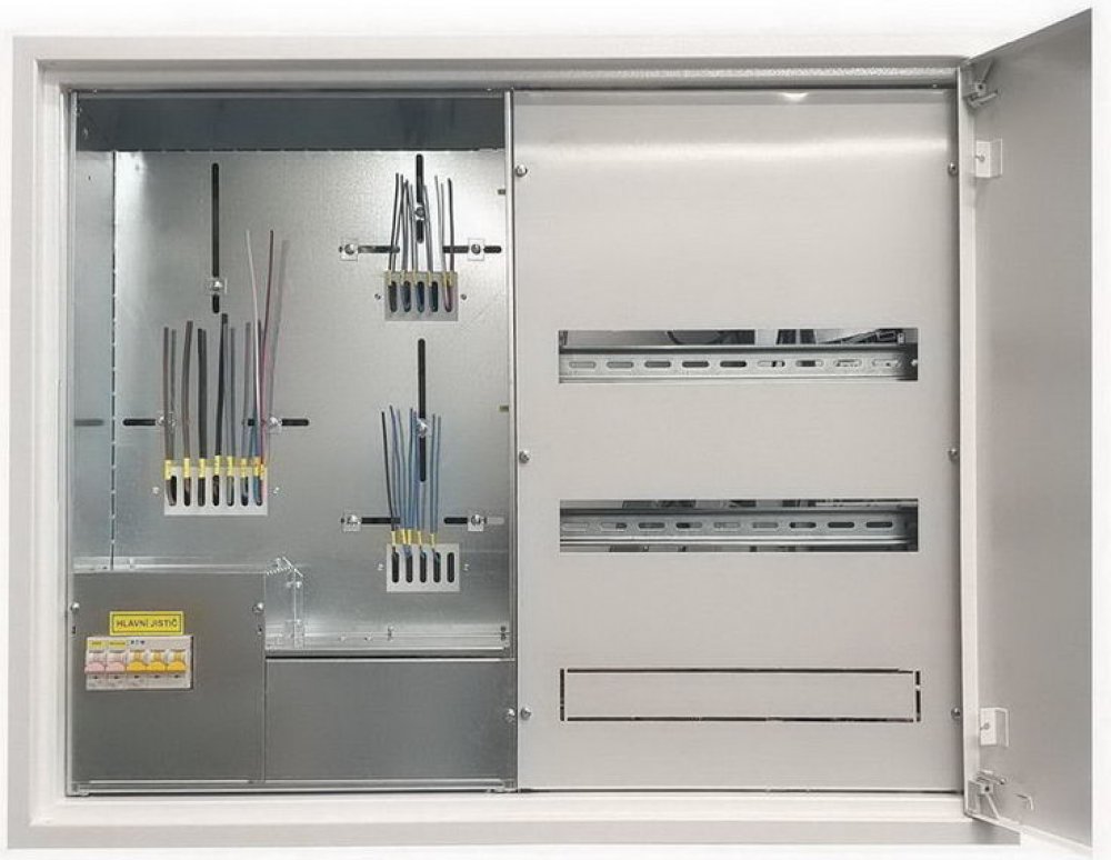 Elektroměrový rozvaděč pro 1 měření a 1 HDO + 54M podružná část ČEZ/EGD Rozvaděč bez hlavního jističe, jistič HDO a tarifní relé - osazeno Podružná část vpravo Přívodní svorky pro kabel 4x16mm2 Rozvaděč je možné osadit jističem 10 - 63A Rozměry: (š. x v. x h.) 880 x 620 x 220 Rozměry otvoru 840 x 590 x 250