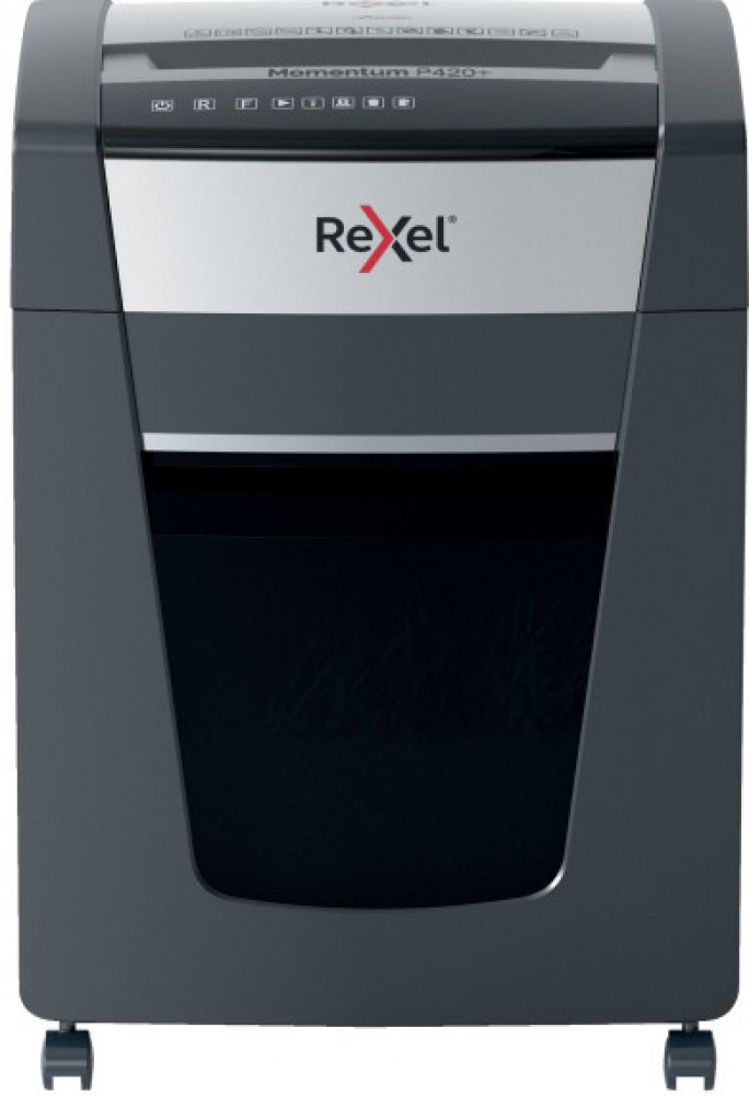 Skartovačky Rexel Momentum s technologií proti zasekávání papíru jsou ideální pro ničení důvěrných dokumentů v kanceláři. Skartovačka P420+ skartuje až 20 listů papíru A4 (80 g/m2) na jednou přes otvor pro ruční podávání křížovým řezem P-4 (4x35 mm). Technologie aktivního snímání měří počet podávaných listů v reálném čase, aby se zabránilo zaseknutí a chybnému podání papíru; indikuje to červená LE...