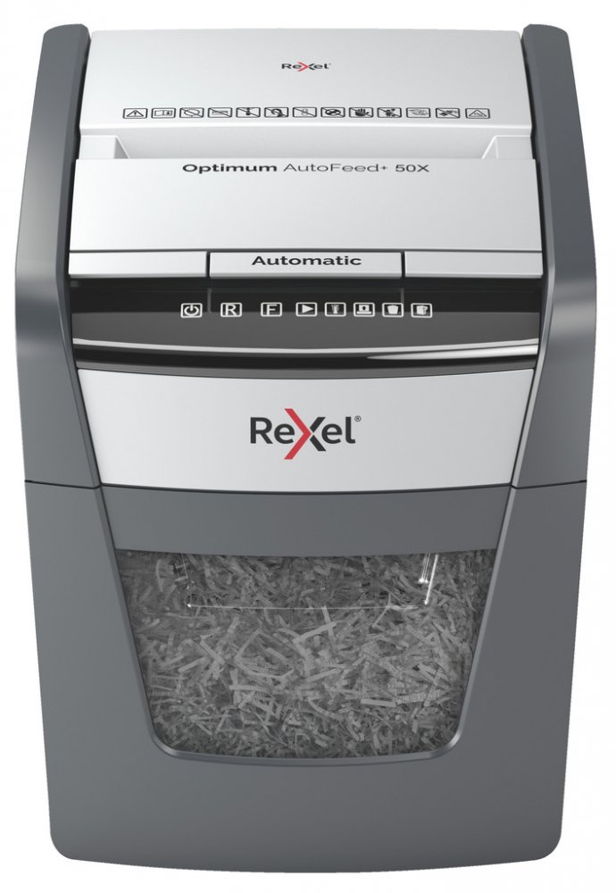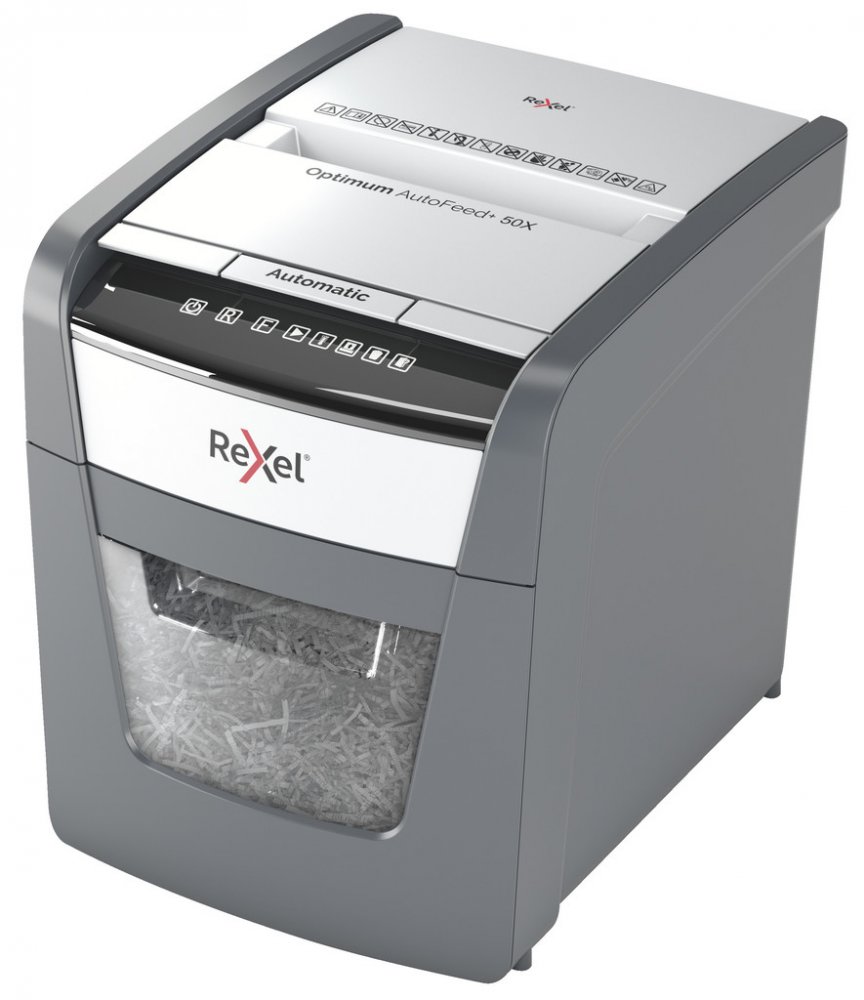 Vysoce výkonný skartovač Optimum AutoFeed+ 50 Pro P4 vhodný pro domácí a kancelářské použití