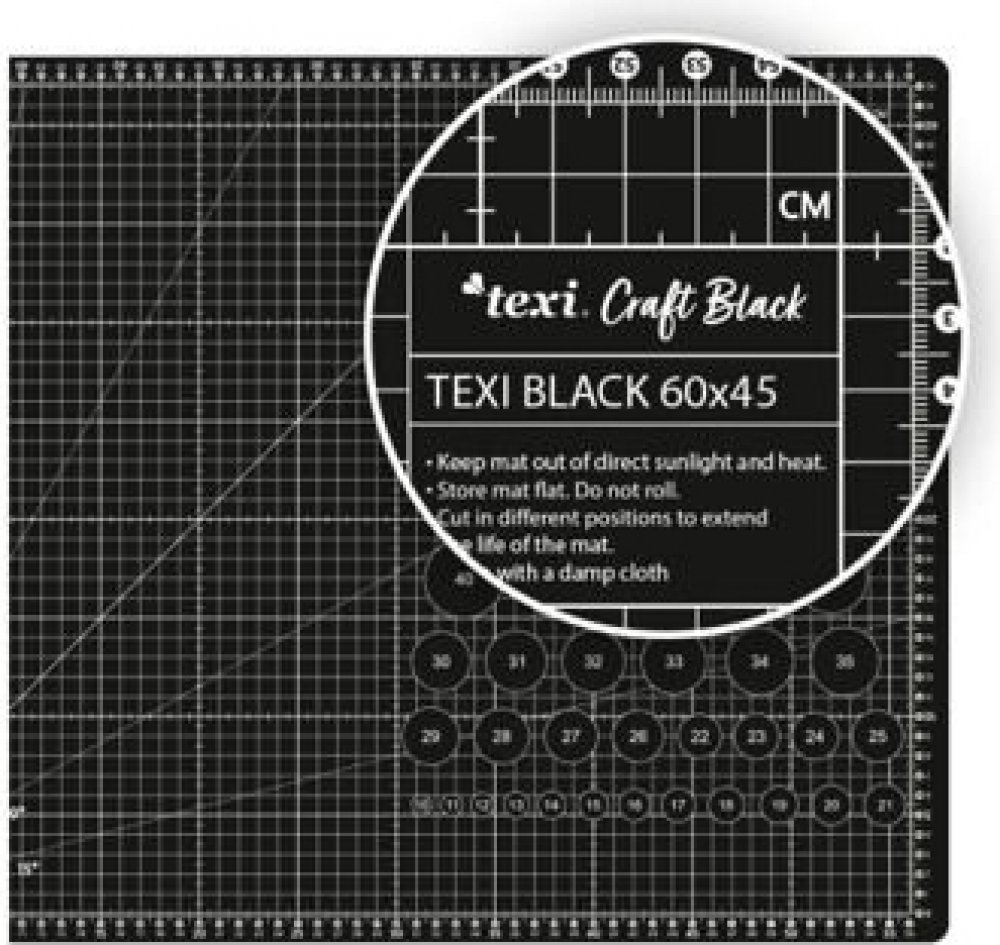 Řezací podložka TEXI BLACK (5 vrstvá) Řezací podložka TEXI BLACK má 5 vrstev a je tak skvělá i pro řezání silnějších materiálů, kde je potřeba vyvíjet větší tlak. Samosvorná funkce uzavře povrch podložky po řezy, což zajišťuje delší životnost podložky. Podložka je odlehčená a jedná se o nejkvalitnější podložku na našem trhu. Na podložce můžete řezat pomocí řezacích koleček i skalpelů. Na podložce je vyznačená přesná měřící síť, která je navržená pro praváky i leváky. Podložka má velmi kvalitní povrch o síle 3 mm, který zajistí i dlouhodobou ostrost řezáku. Podložka má černou barvu a stane se tak designovým doplňkem šicí dílny. Podložka o rozměru 22 x 15 cm má jednu stranu s metrickou sítí (19 x 12 cm). Podložka o rozměru 30 x 22 cm má jednu stranu s metrickou sítí (27 x 19 cm) a druhou stranu se sítí v palcích (10 x 7 palců). Podložka o rozměru 45 x 30 cm má jednu stranu s metrickou sítí (45 x 30 cm) a druhou stranu se sítí v palcích (16 x 10 palců). Podložka o rozměru 60 x 45 cm má jednu stranu s metrickou sítí (60 x 45 cm) a druhou stranu se sítí v palcích (24 x 16 palců). Podložka o rozměru 90 x 60 cm má jednu stranu s metrickou sítí (90 x 60 cm) a druhou stranu se sítí v palcích (34 x 22 palců). Upozornění od výrobce: Tato podložka je určena k používání pouze s řezacími kolečky a skalpely. Jiné řezáky s fixním břitem mohou způsobit trhlinu, nebo zlom v podložce. Podložku dlouhodobě nerolujte, ponechejte na pevném rovném podkladu. Nevystavujte ji přímému slunečnímu záření, žáru a vysokým teplotám, které mohou být příčinou zvlnění a zkrácení životnosti produktu. Vyvarujte se řezání na jednom místě, může dojít k prořezání podložky a následnému vzniku trhliny, nebo zlomu v místě řezu. Minimální tlak vyvíjený při řezání redukuje opotřebení a prodlužuje životnost produktu.