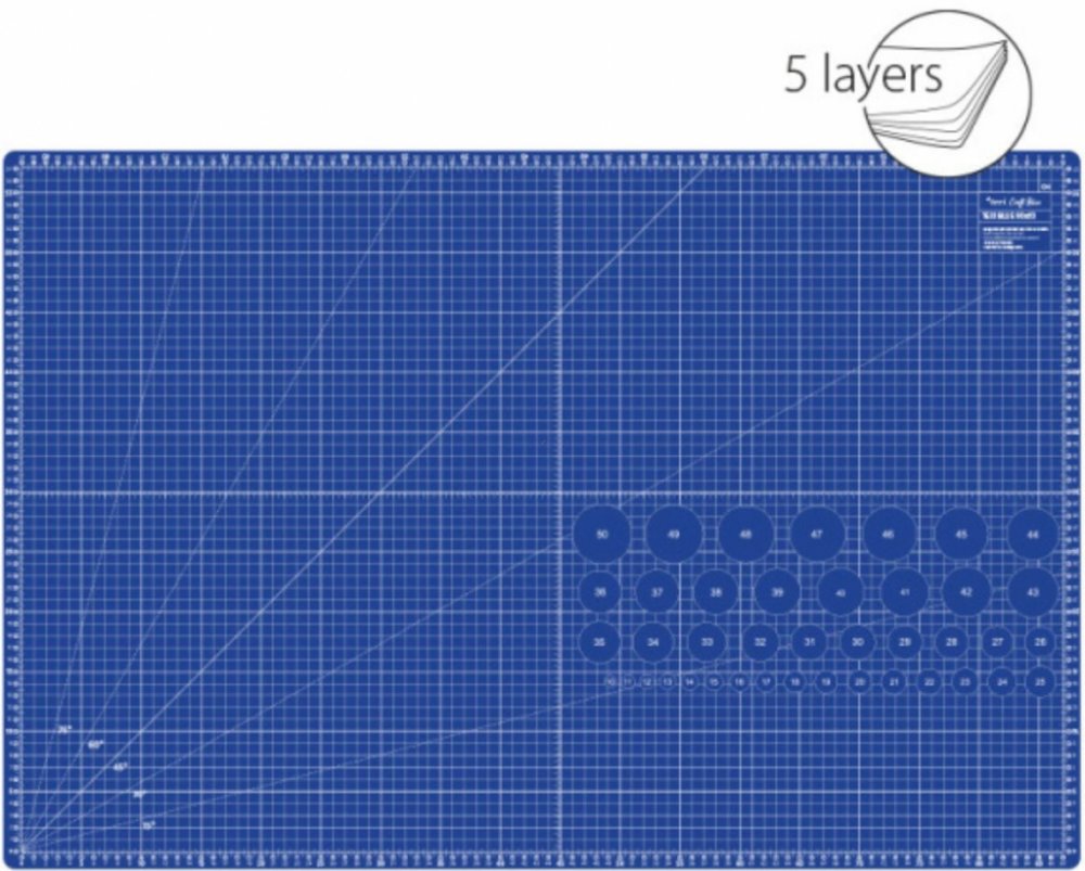 Podložka na patchwork 5vrstvá, vhodná pro řezání i silnějších materiálů, kde je potřeba vyvíjet větší tlak. Odlehčená, nejkvalitnější řezací podložka na našem trhu. Samosvorná funkce uzavře povrch podložky po řezu. Podložka je navržena především pro řezání látek pomocí řezacího kolečka, ale i skalpelů. Má přesnou měřící síť, navrženou pro praváky i leváky. Díky povrchu a síle 3 mm je podložka velmi kvalitní a zajistí, že řezák zůstane dlouhodobě ostrý. Podložka má jednu stranu s metrickou sítí (90 x 60 cm) a druhou stranu se sítí v palcích (34 x 22 palců). V kombinaci s řezacím kolečkem a pravítkem budete moci velmi jednoduše, rychle a přesně řezat pruhy i jiné tvary. Upozorňujeme, že měření v cm je přehlednější, a pokud využíváte předlohy českých prací, jsou stupnice v cm lepší, ale většina zahraničních prací je v palcích. Získáte neocenitelného pomocníka.