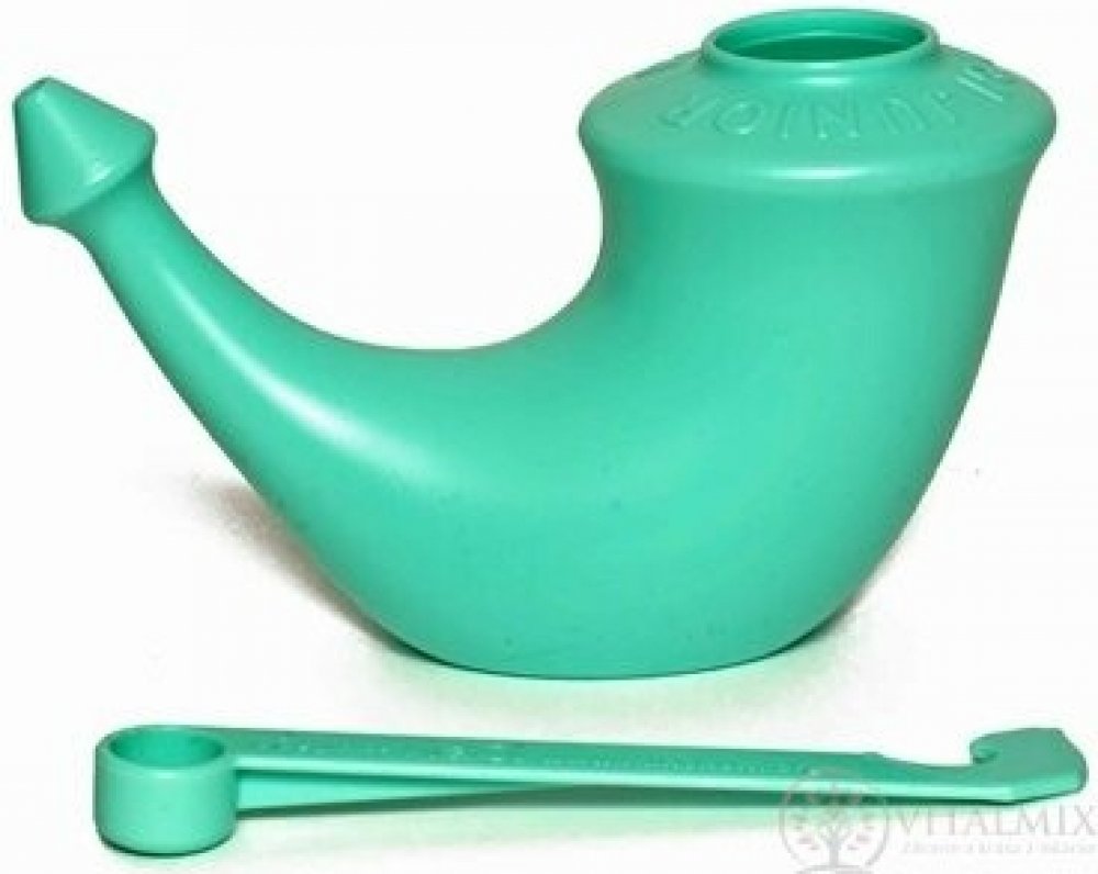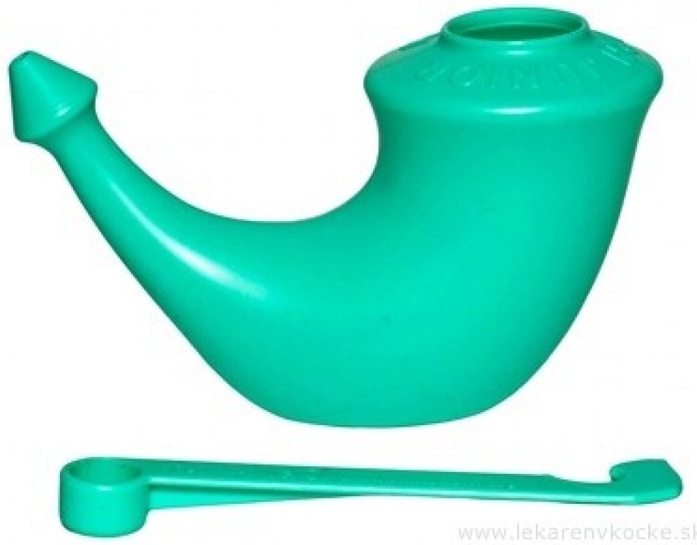 Osvědčený systém k výplachu nosu solnými roztoky. Jednoduchá a odolná konstrukce s možností jednoduché domácí desinfekce (např. několikaminutovým vyvařením ve vodě) zajišťuje prakticky neomezenou životnost.