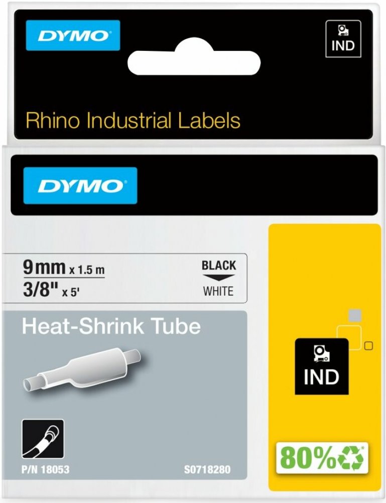 Průmyslové teplem smrštitelné etikety DYMO jsou vyrobeny z průmyslového polyolefinu a mají poměr smrštění 3:1, což umožňuje pohodlný tisk přímo na samotnou trubku pomocí jakéhokoli průmyslového etiketovacího nástroje DYMO pro vynikající identifikaci kabelů. Tyto samolepky mají snadno odlepitelnou zadní stranu, díky které je jejich aplikace snadná. Kompatibilní s průmyslovými tiskárnami štítků DYMO Rhino 4200, 5200, 6000.