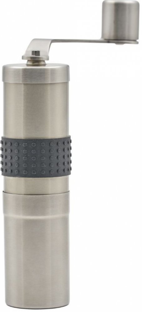 Mlýnek má ergonomickou rukojeť, která umožňuje pohodlnou manipulaci a snadné mletí kávy. Jeho kompaktní velikost a odolné provedení z nerezové oceli zajišťují, že se mlýnek snadno vejde do vaší kuchyně nebo do tašky na cesty.