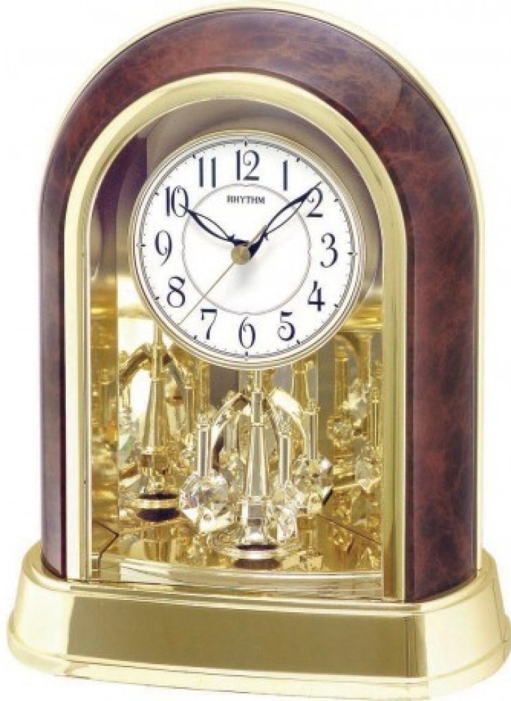 Kvalitní hodiny na postavení dovitríny nebo na polici.Přesnost zajišťuje strojek Quartzna tužkovou baterii. Uprostřed hodin je otáčející sekyvadlo. Velmi atraktivní provedení vezlaté barvě - vnitřní část,vnější v imitaci dřeva - tmavě hnědé provedení.Hodiny jsou vyrobeny z plastua jsou zdobeny krystaly Swarovski.Krásný dárek na památku!Velikost: 21x27x12cm