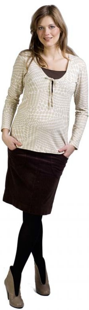 Skvěle padnoucí kojící a těhotenské viskózové tričko s kulatým výstřihem s vazačkami a kontrastní vsadkou. Ve vsadce jsou po stranách otvory pro možnost kojení. Tričko velmi dobře využijete i po porodu a období kojení. Toto tričko je velmi oblíbené. Kojící tričko A střihu s kulatým výstřihem s vazačkami, PD s kontrastní vsadkou, podstřižený pod prsy, přední kraje vrchních dílů se dotýkají, vsadka ...