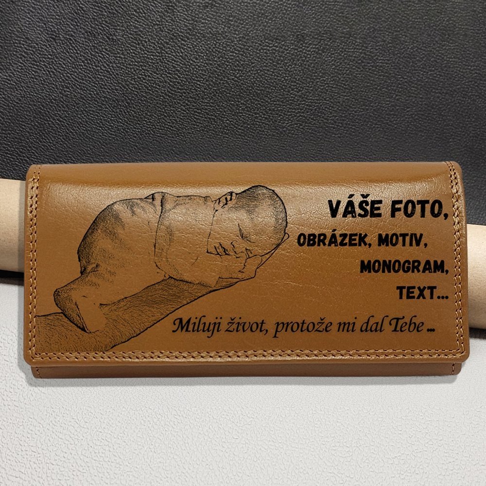 Na přední nebo vnitřní stranu peněženky vám na přání vygravírujeme vlastní monogram, text, logo, fotografii, motiv nebo osobní poselství. Díky této možnosti můžete vytvořit skutečně jedinečný produkt s hlubokým významem – ať už pro sebe, nebo jako dárek pro někoho blízkého.Personalizovaná peněženka je ideálním dárkem pro maminku, manželku, partnerku, sestru či kamarádku. Hodí se ke každé příležitosti – narozeniny, výročí, svátek, Vánoce, Den matek, svatba nebo promoce. Gravírování z ní dělá více než módní doplněk – stává se vzpomínkou.