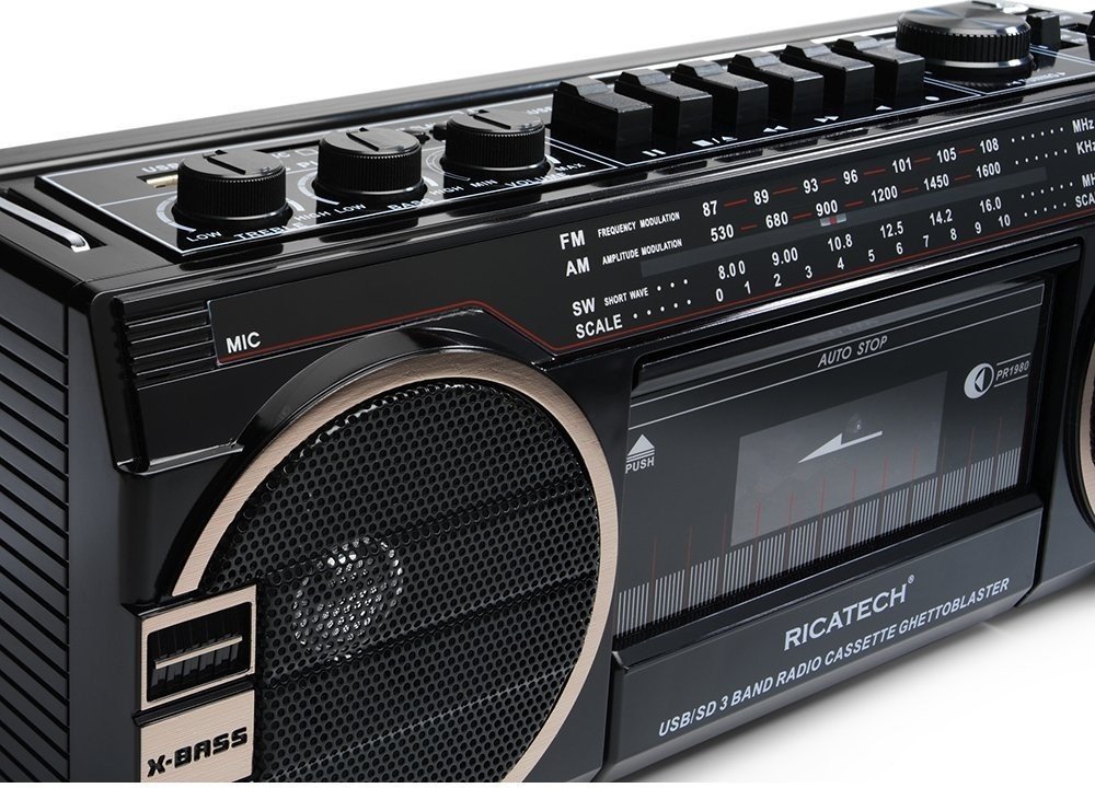 Vraťte se zpátky v čase, vychutnejte si hudbu jako v 80. letech s přenosným kazetovým přehrávačem Ricatech PR1980 Ghettoblaster.