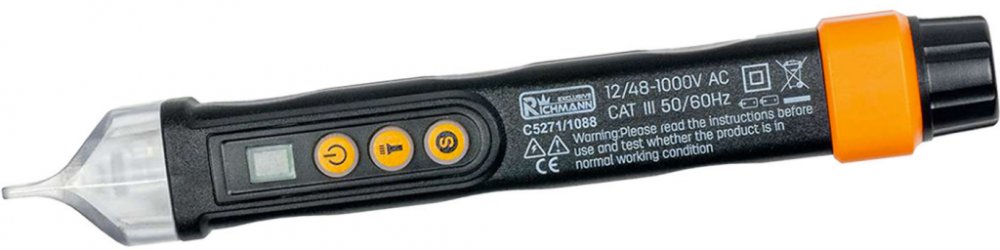 Technická dataNapájení:2 x AAARozsah měření:12 - 1000 VCelková délka (L):160 mmOstatní vlastnosti:světelný signál, zvukový signálSoučást balení:baterie 2x AAA