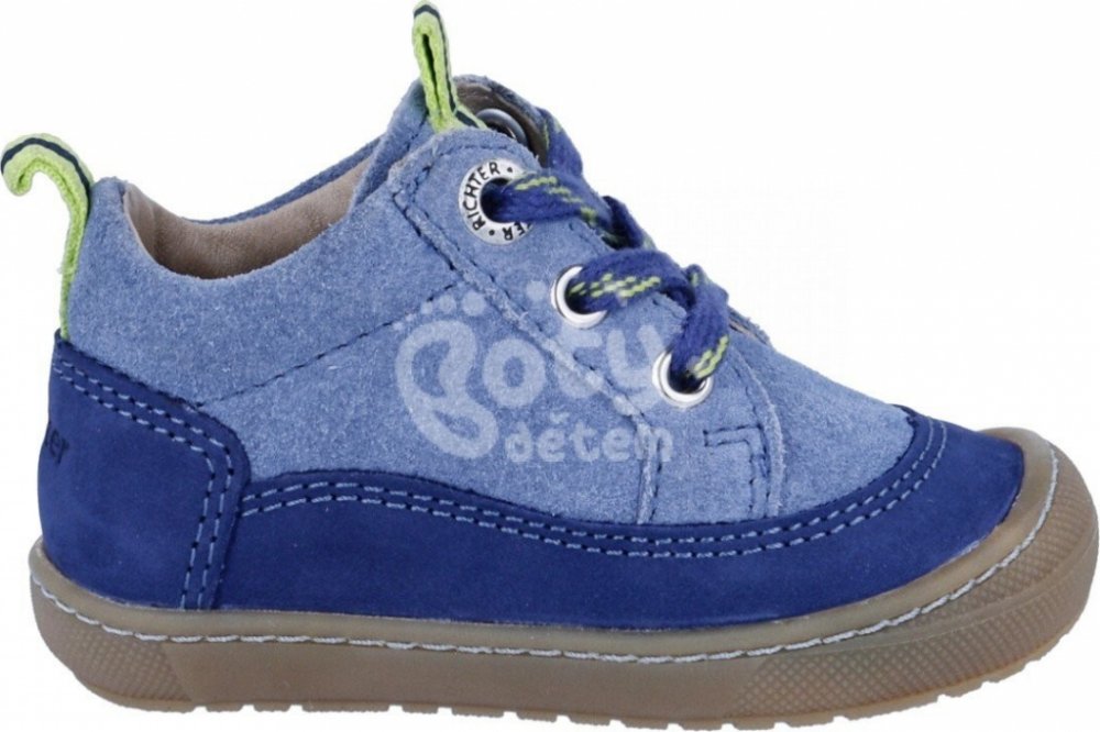 Celoroční vycházkové kožené, šněrovací botičky Richter. Jsou extrémně lehké, s maximálně ohebnou podešví, rovnou stélkou a lehce zpevněným opatkem. Okopová špička pro lepší ochranu botičky při chůzi. Jsou celoroční, neboť jsou vhodné do cca 5-18°C, v závislosti na individuální tělesné termoregulaci dítěte.