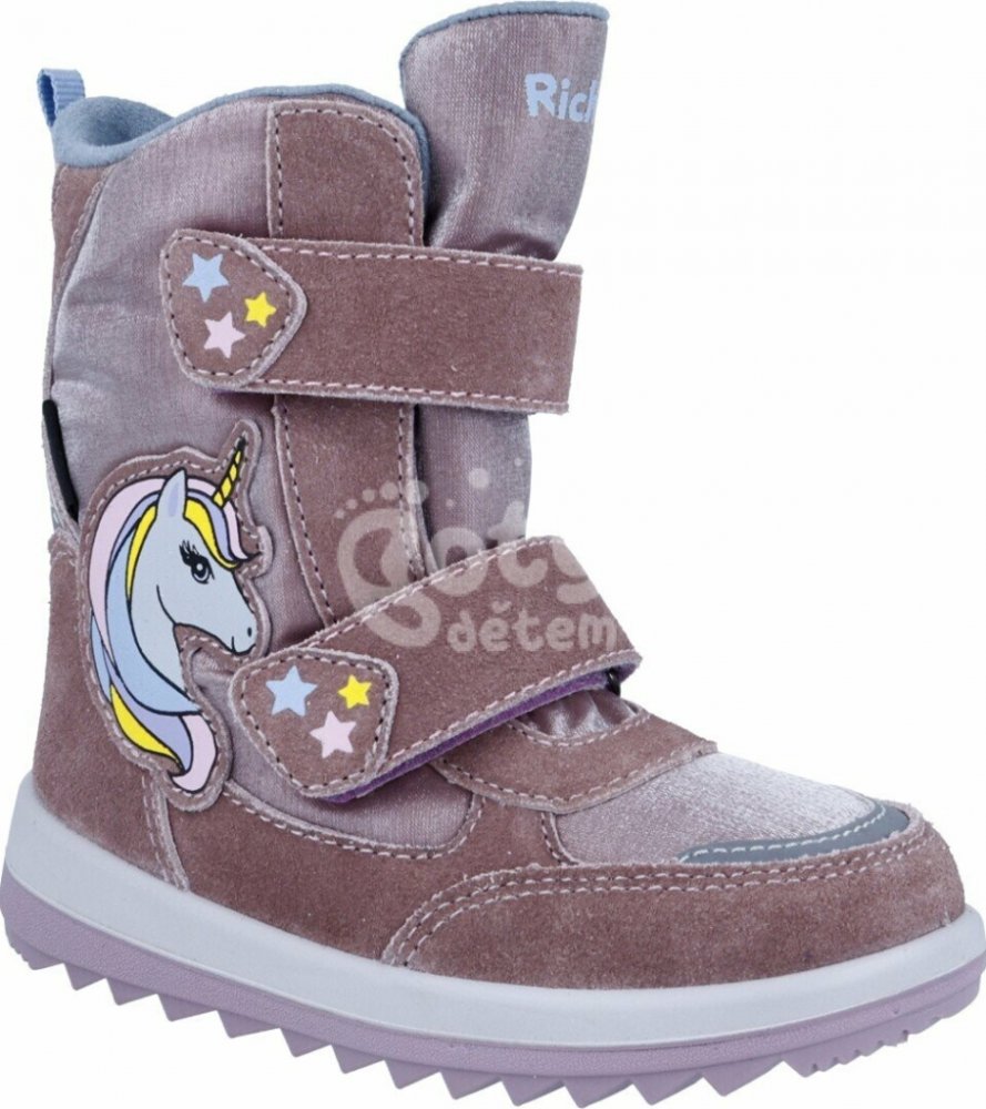 Zimní vycházková obuv s membránou Sympatex. Krásně sedí na úzkou nožku. Zapínání na suchý zip. Podešev je lehká a ohebná. Díky membráně obuv nepromokne a je prodyšná.