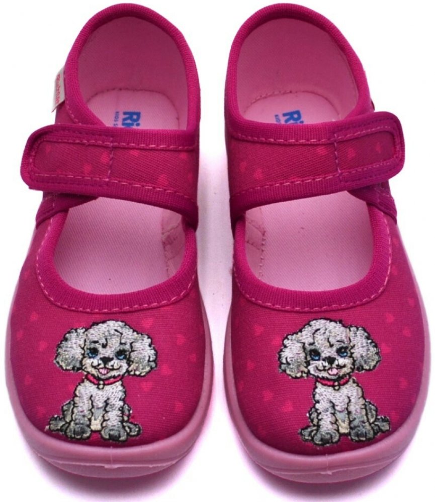 Dívčí balerínkové bačkůrky (domácí obuv) se zapínáním na suchý zip, velmi pohodlné a lehké. Ohebná podešev vytvořena s ohledem na ekologii a životní prostředí - podešev obsahuje kukuřici. Stélka je textilní a díky polstrování měkká.