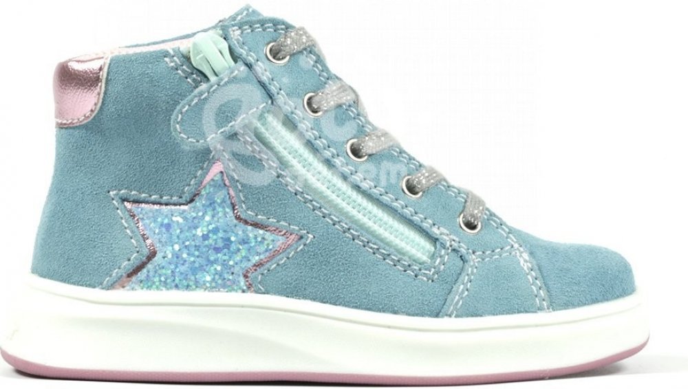 Vysoké tenisky z hladké kůže a efektního materiálu se šněrováním a zipem. Dívčí luxusní kožená obuv z velmi jemné a prodyšné kůže se sametovým povrchem a lesklou aplikací. Barva - světle modrá. Svršek obuvi - broušená kůže. Podšívka obuvi - kůže - je odolný přírodní materiál, který je zároveň prodyšný a napomáhá při odpařování pár a správné cirkulaci vzduchu v botě. Vyjímatelná, rostlinami vyčin...