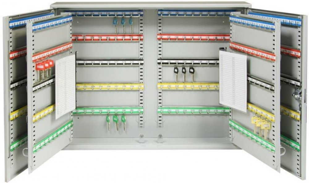 - Ocelová dvoukřídlá skříň na klíče.