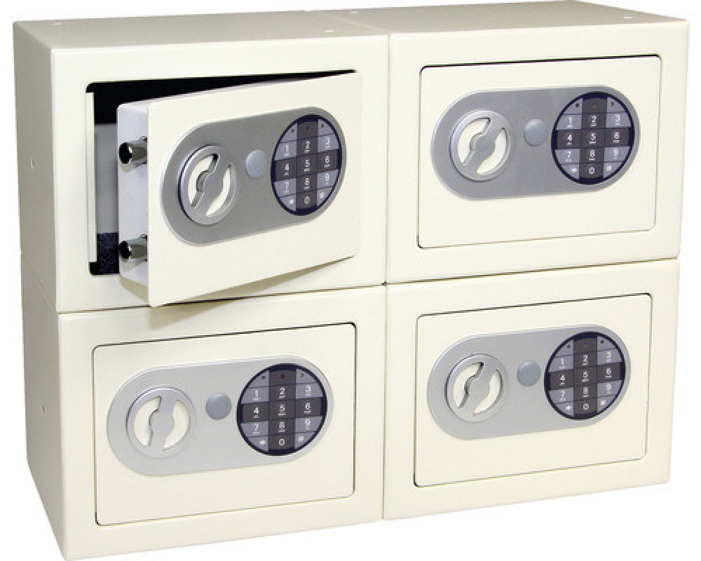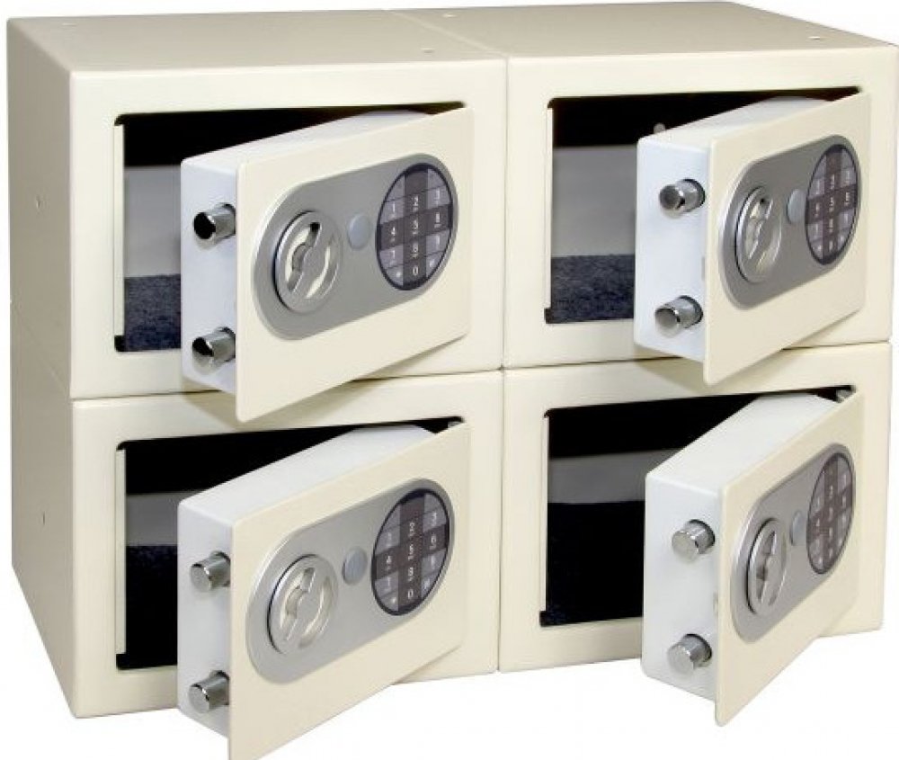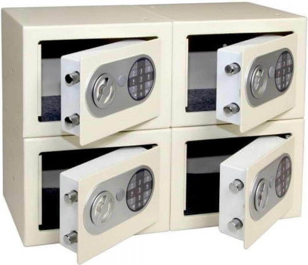 Sestava 4 ks ocelových sejfů s elektronickým zámkem a nouzovým klíčem