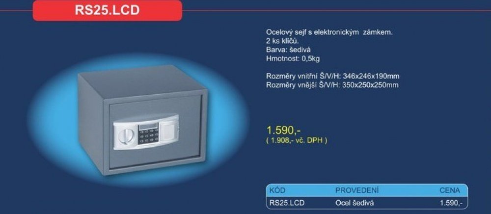 Ocelový sejf RS.25.LCD s elektronickým zámkem a LCD displejem.