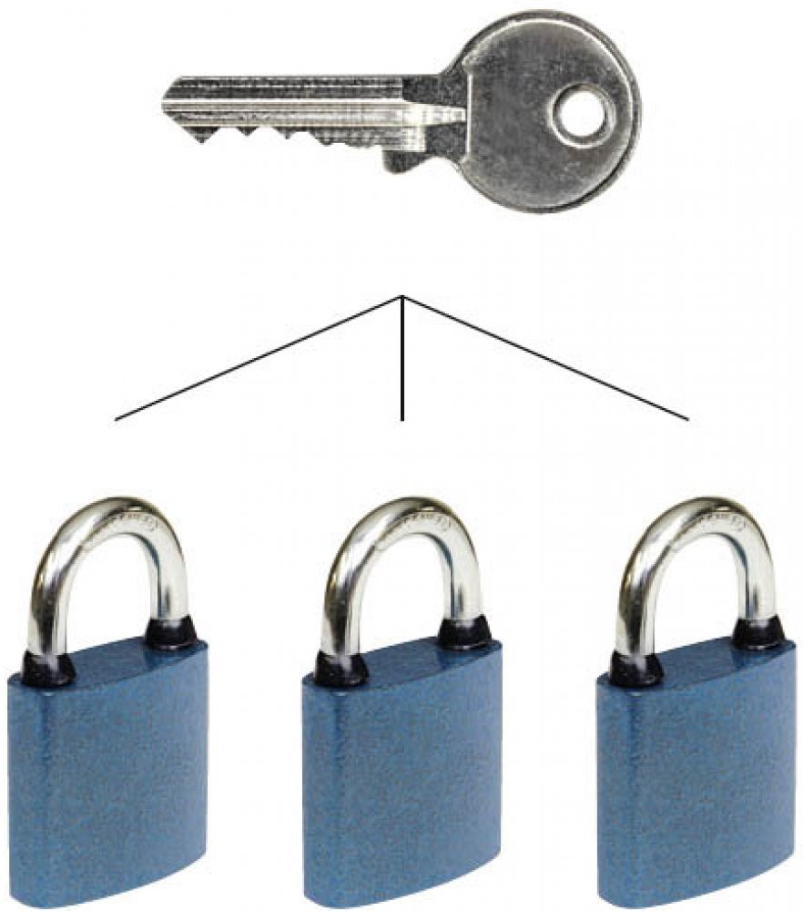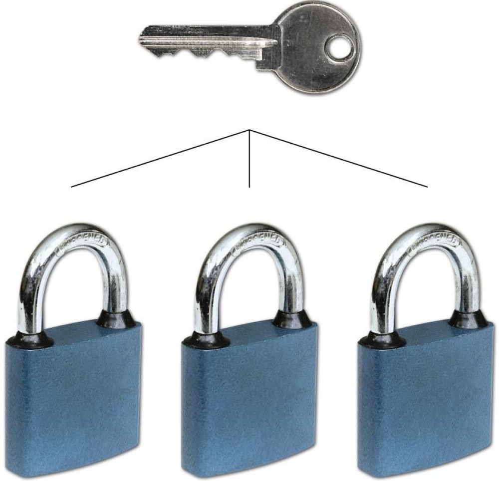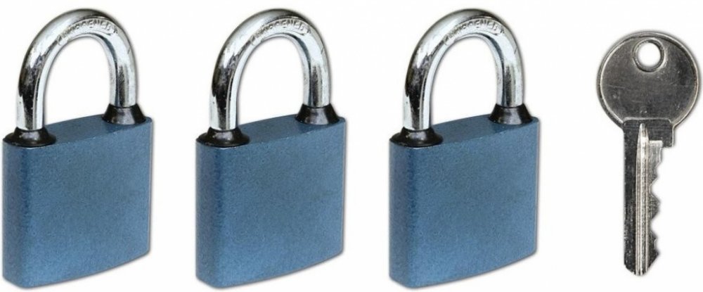 Set 3 ks visacích zámků na společný uzávěr – „SU“.