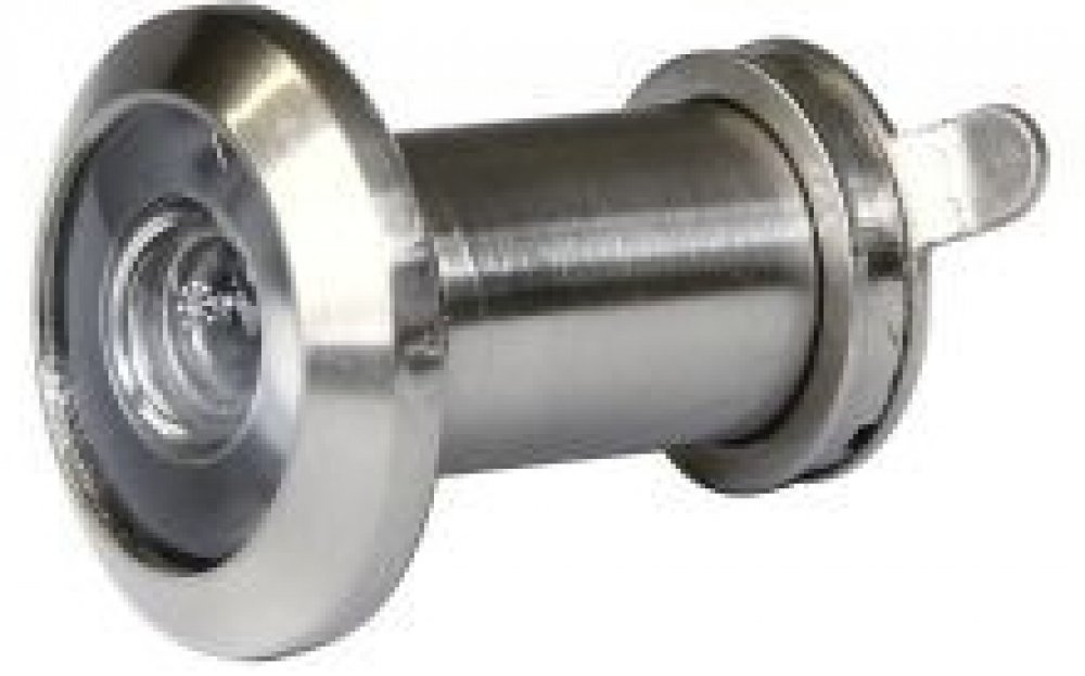Dveřní kukátko RVW.20-38 Tento model klasického dveřního kukátka slouží k monitorování chodeb a prostorů před dveřmi. Díky tomuto kukátku budete mít neustálý přehled o tom, co se děje za zavřenými dveřmi. Kukátko má pozorovací úhel 180° a je vhodné pro tloušťku dveří 20-38 mm. Je vyrobené ze zamaku (slitina zinku, hliníku, hořčíku a mědi) s povrchovou úpravou do matného niklu. Součástí balení jsou 2 ks podložek. Důležité parametry Pozorovací úhel 180° Pro tloušťku dveří 20-38 mm Podložky (2 ks) součástí balení Rozměry celého kukátka 26 × 20-38 mm (průměr × hloubka) Rozměry podložky 48 × 2 mm (průměr × tloušťka)