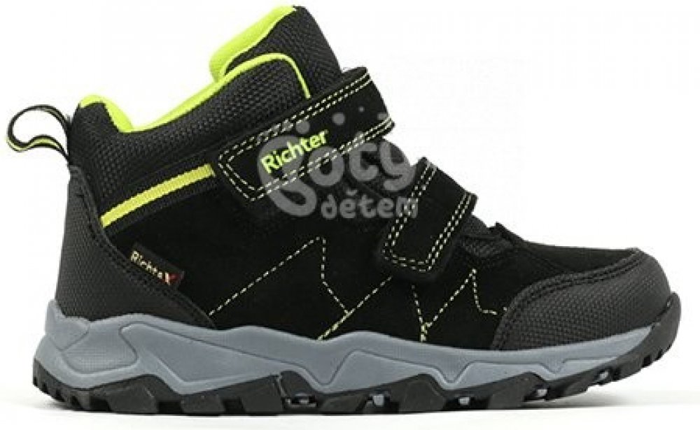 Sportovní vyšší kožené tenisky s membránou Richtex®. Membrána Richtex® nabízí optimální pohodlí za každého počasí. Je mezi podšívkou a svrškem a díky tomu je bota voděodolná, prodyšná a zároveň větruodolná. Textilní odolná podšívka. Svršek - kombinace textilu a kůže. Suchý zip pro snadné utažení, zajišťuje perfektní držení a umožňuje snadné obuví. Extrémně lehká a maximálně ohebná podrážka. Textilní vyjímatelná stélka. Obouvání a vyzouvání bot zpříjemňuje zajistí suchý zip. Délka vnitřní stélky: velikost 25 - 16,3 cm velikost 26 - 17,0 cm velikost 27 - 17,6 cm velikost 28 - 18,3 cm velikost 29 - 19 cm velikost 30 - 19,7 cm velikost 31 - 20,3 cm velikost 32 - 21 cm velikost 33 - 21,7 cm velikost 34 - 22,3 cm velikost 35 - 23 cm velikost 36 - 23,7 cm velikost 37 - 24,3 cm velikost 38 - 25 cm velikost 39 - 25,7 cm velikost 40 - 26,3 cm velikost 41 - 27 cm Pozn. Naměřené údaje ± 2 mm. Rakouská společnost Richter vyrábí dětské boty již od roku 1893. Richter boty jsou vyrobeny s velkou pčelivostí a velkým důrazem na detail, z vysoce kvalitních materiálů tak, aby se daly použít ve všech činnostech a zajistily, aby se děti cítily příjemně v každém počasí. Jsou konstruovány tak, aby apelovaly na děti a rodiče jak vizuálně, tak i poskytováním nezbytných funkcí, které splňují vysoké nároky každodenních potřeb.