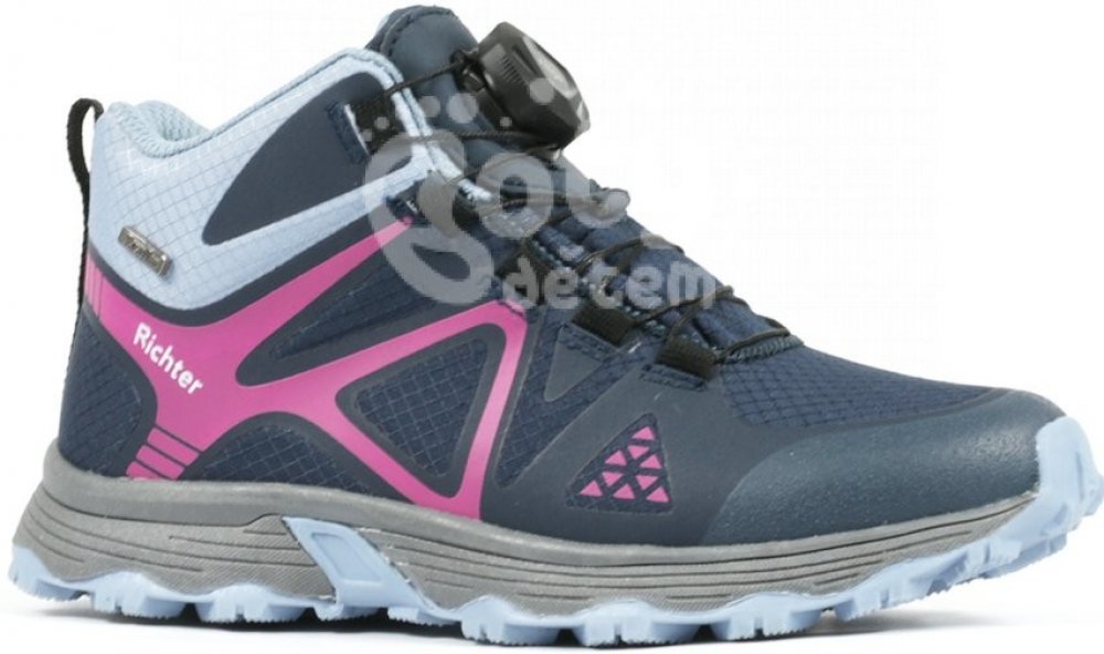 Sportovní vyšší textilní tenisky s membránou Richtex®. Membrána Richtex® nabízí optimální pohodlí za každého počasí. Je mezi podšívkou a svrškem a díky tomu je bota voděodolná, prodyšná a zároveň větruodolná. Textilní odolná podšívka. Na straně nahoře rychloupínací systém kolečko Fitgo® zajišťuje perfektní držení a umožňuje snadné zapnutí a vypnutí. Extrémně lehká a maximálně ohebná podrážka. Textilní vyjímatelná stélka. Délka vnitřní stélky: velikost 28 - 18,5 cm velikost 29 - 19 cm velikost 30 - 19,7 cm velikost 31 - 20,3 cm velikost 31 - 20,3 cm velikost 32 - 21 cm velikost 33 - 21,7 cm velikost 34 - 22,3 cm velikost 35 - 23 cm velikost 36 - 23,7 cm velikost 37 - 24,3 cm velikost 38 - 25 cm velikost 39 - 25,7 cm velikost 40 - 26,3 cm velikost 41 - 27 cm Rakouská společnost Richter vyrábí dětské boty již od roku 1893. Richter boty jsou vyrobeny s velkou pčelivostí a velkým důrazem na detail, z vysoce kvalitních materiálů tak, aby se daly použít ve všech činnostech a zajistily, aby se děti cítily příjemně v každém počasí. Jsou konstruovány tak, aby apelovaly na děti a rodiče jak vizuálně, tak i poskytováním nezbytných funkcí, které splňují vysoké nároky každodenních potřeb.