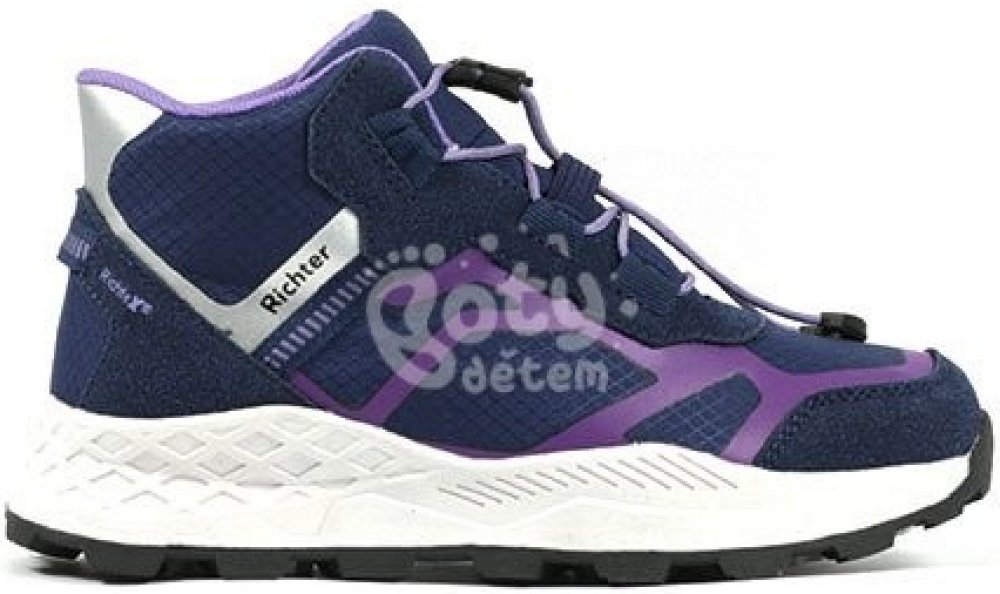 Sportovní vyšší textilní tenisky s membránou Richtex®. Membrána Richtex® nabízí optimální pohodlí za každého počasí. Je mezi podšívkou a svrškem a díky tomu je bota voděodolná, prodyšná a zároveň větruodolná. Textilní odolná podšívka. Zatahovací tkanička pro snadné utažení, zajišťuje perfektní držení a umožňuje snadné obuví. Extrémně lehká a maximálně ohebná podrážka. Textilní vyjímatelná stélka. Obouvání a vyzouvání bot zpříjemňuje a zrychluje kvalitní rychloupínání. Délka vnitřní stélky: velikost 31 - 20,3 cm velikost 32 - 21 cm velikost 33 - 21,7 cm velikost 34 - 22,3 cm velikost 35 - 23 cm velikost 36 - 23,7 cm velikost 37 - 24,3 cm velikost 38 - 25 cm velikost 39 - 25,7 cm velikost 40 - 26,3 cm velikost 41 - 27 cm Pozn. Naměřené údaje ± 2 mm. Rakouská společnost Richter vyrábí dětské boty již od roku 1893. Richter boty jsou vyrobeny s velkou pčelivostí a velkým důrazem na detail, z vysoce kvalitních materiálů tak, aby se daly použít ve všech činnostech a zajistily, aby se děti cítily příjemně v každém počasí. Jsou konstruovány tak, aby apelovaly na děti a rodiče jak vizuálně, tak i poskytováním nezbytných funkcí, které splňují vysoké nároky každodenních potřeb.