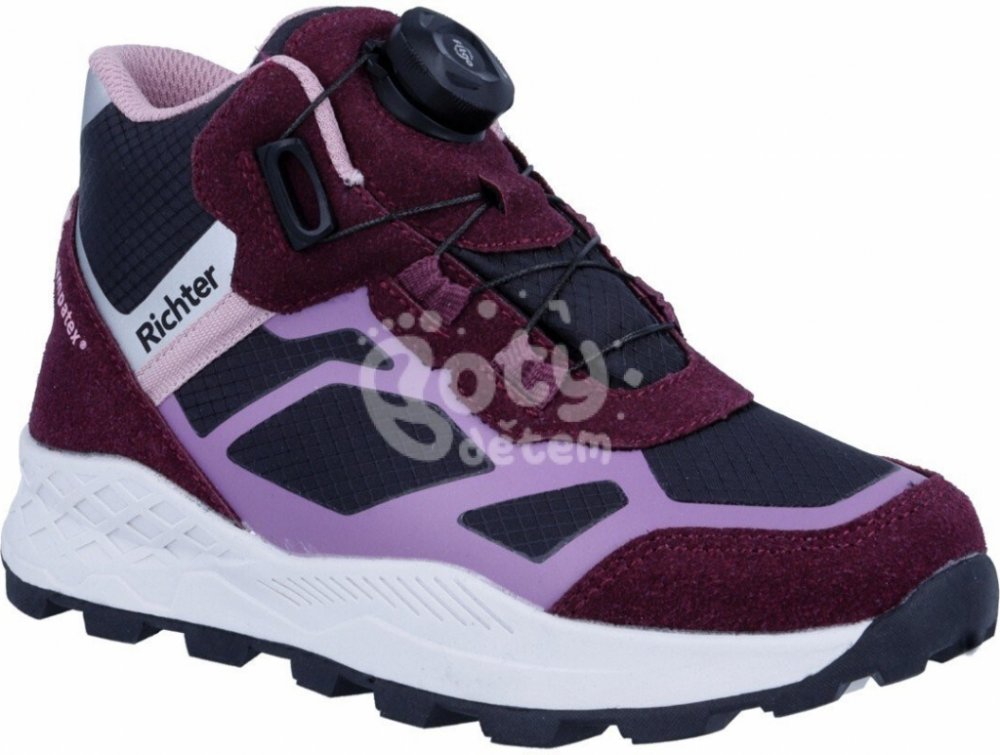 Sportovní vyšší textilní tenisky s membránou Richtex®. Membrána Richtex® nabízí optimální pohodlí za každého počasí. Je mezi podšívkou a svrškem a díky tomu je bota voděodolná, prodyšná a zároveň větruodolná. Textilní odolná podšívka. Na jazyku rychloupínací systém kolečko Fitgo® zajišťuje perfektní držení a umožňuje snadné zapnutí a vypnutí. Extrémně lehká a maximálně ohebná podrážka. Textilní vyjímatelná stélka. Obouvání a vyzouvání bot zpříjemňuje a zrychluje kvalitní rychloupínání. Délka vnitřní stélky: velikost 31 - 20,3 cm velikost 32 - 21 cm velikost 33 - 21,7 cm velikost 34 - 22,3 cm velikost 35 - 23 cm velikost 36 - 23,7 cm velikost 37 - 24,3 cm velikost 38 - 25 cm velikost 39 - 25,7 cm velikost 40 - 26,3 cm velikost 41 - 27 cm Pozn. Naměřené údaje ± 2 mm. Rakouská společnost Richter vyrábí dětské boty již od roku 1893. Richter boty jsou vyrobeny s velkou pčelivostí a velkým důrazem na detail, z vysoce kvalitních materiálů tak, aby se daly použít ve všech činnostech a zajistily, aby se děti cítily příjemně v každém počasí. Jsou konstruovány tak, aby apelovaly na děti a rodiče jak vizuálně, tak i poskytováním nezbytných funkcí, které splňují vysoké nároky každodenních potřeb.
