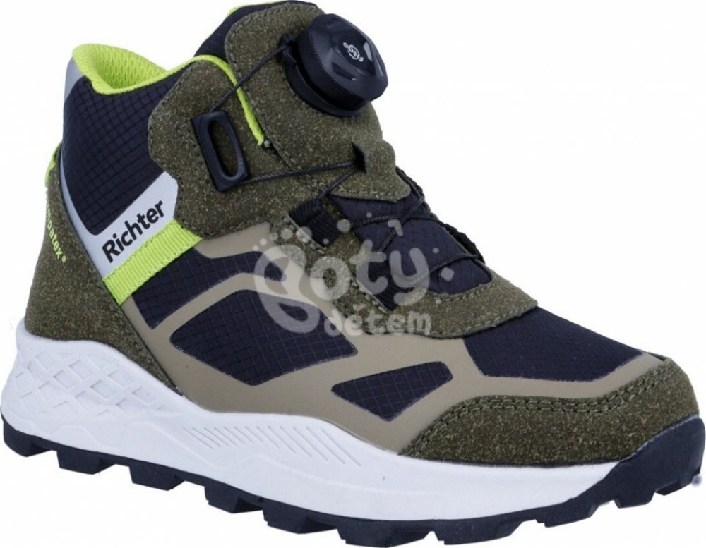 Sportovní vyšší textilní tenisky s membránou Richtex®. Membrána Richtex® nabízí optimální pohodlí za každého počasí. Je mezi podšívkou a svrškem a díky tomu je bota voděodolná, prodyšná a zároveň větruodolná. Textilní odolná podšívka. Na jazyku rychloupínací systém kolečko Fitgo® zajišťuje perfektní držení a umožňuje snadné zapnutí a vypnutí. Extrémně lehká a maximálně ohebná podrážka. Textilní vyjímatelná stélka. Obouvání a vyzouvání bot zpříjemňuje a zrychluje kvalitní rychloupínání. Délka vnitřní stélky: velikost 31 - 20,3 cm velikost 32 - 21 cm velikost 33 - 21,7 cm velikost 34 - 22,3 cm velikost 35 - 23 cm velikost 36 - 23,7 cm velikost 37 - 24,3 cm velikost 38 - 25 cm velikost 39 - 25,7 cm velikost 40 - 26,3 cm velikost 41 - 27 cm Pozn. Naměřené údaje ± 2 mm. Rakouská společnost Richter vyrábí dětské boty již od roku 1893. Richter boty jsou vyrobeny s velkou pčelivostí a velkým důrazem na detail, z vysoce kvalitních materiálů tak, aby se daly použít ve všech činnostech a zajistily, aby se děti cítily příjemně v každém počasí. Jsou konstruovány tak, aby apelovaly na děti a rodiče jak vizuálně, tak i poskytováním nezbytných funkcí, které splňují vysoké nároky každodenních potřeb.