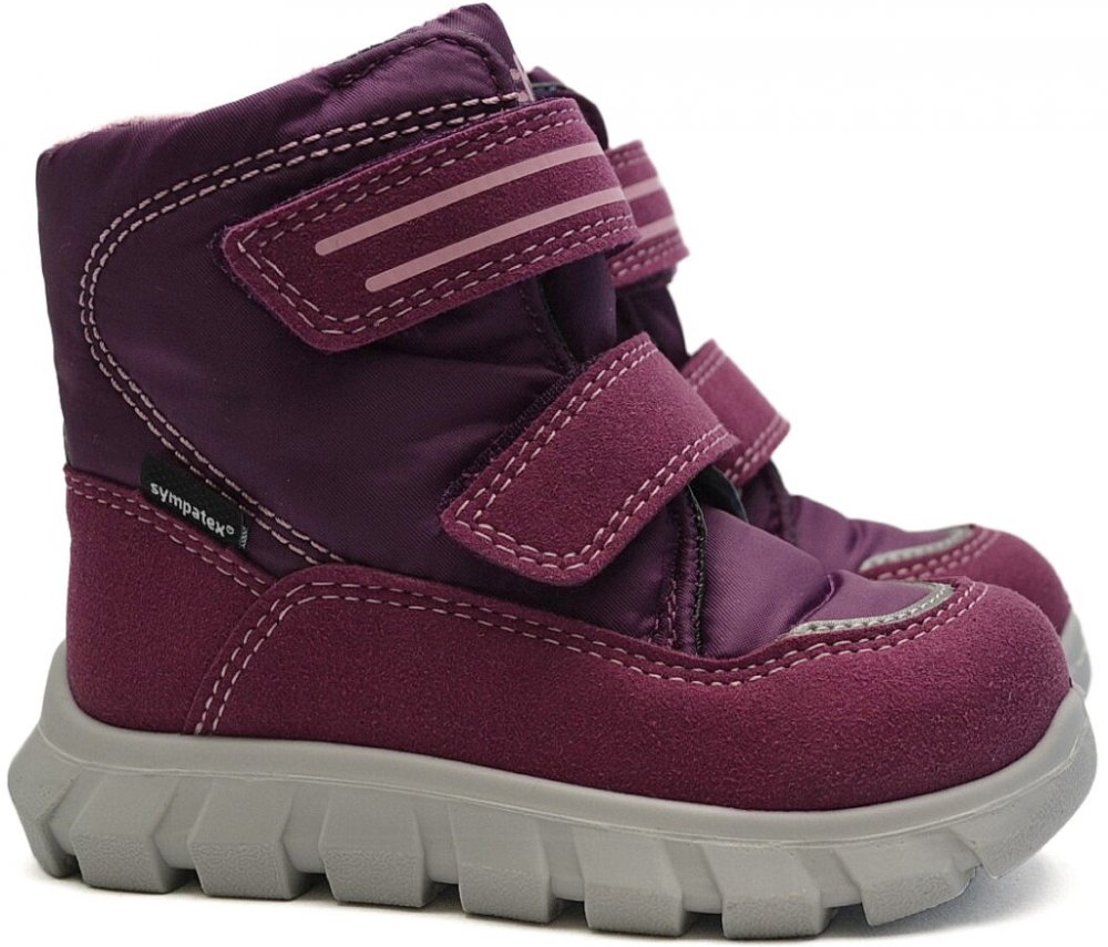 Zimní dívčí, vycházková, nepromokavá obuv, se zapínáním na suchý zip, s vyjímatelnou stélkou, s membránou SYMPATEX®. Tyto botky je vhodné nosit při teplotě 8°C a méně, ve vyšší venkovní teplotě může docházet k přehřívání nožiček a pocení. Horní hranice teploty pro nošení zimní obuvi je závislá i na vnitřní termoregulaci dítěte.